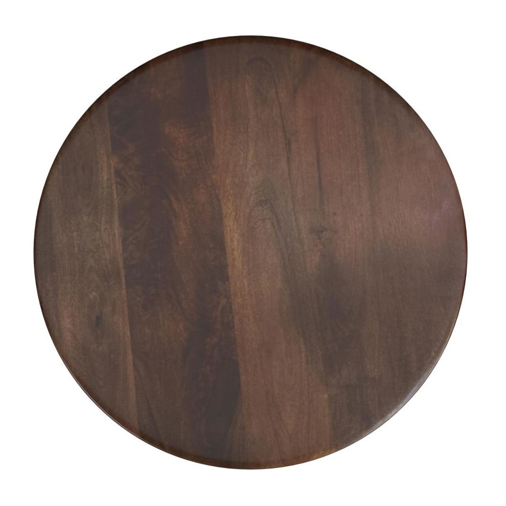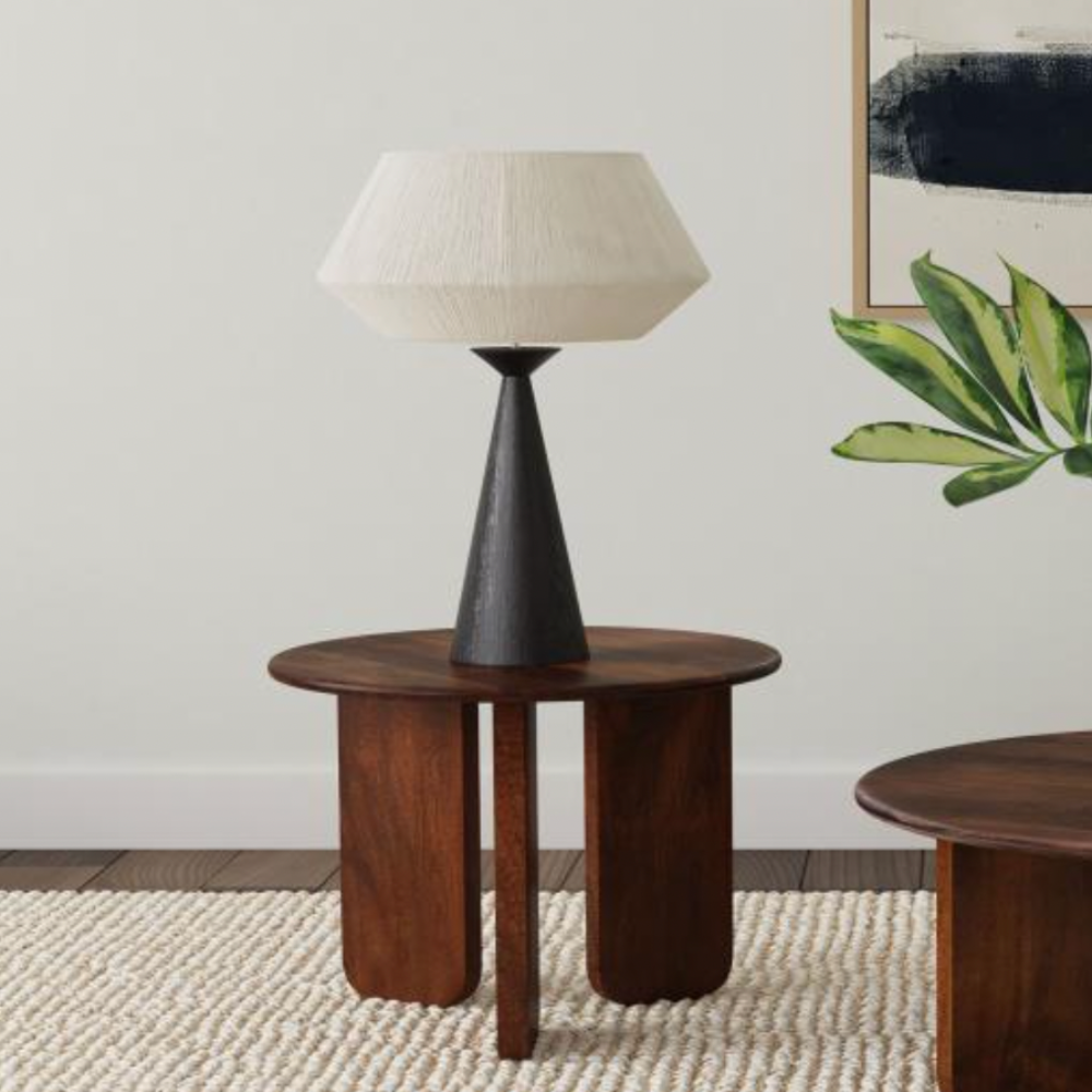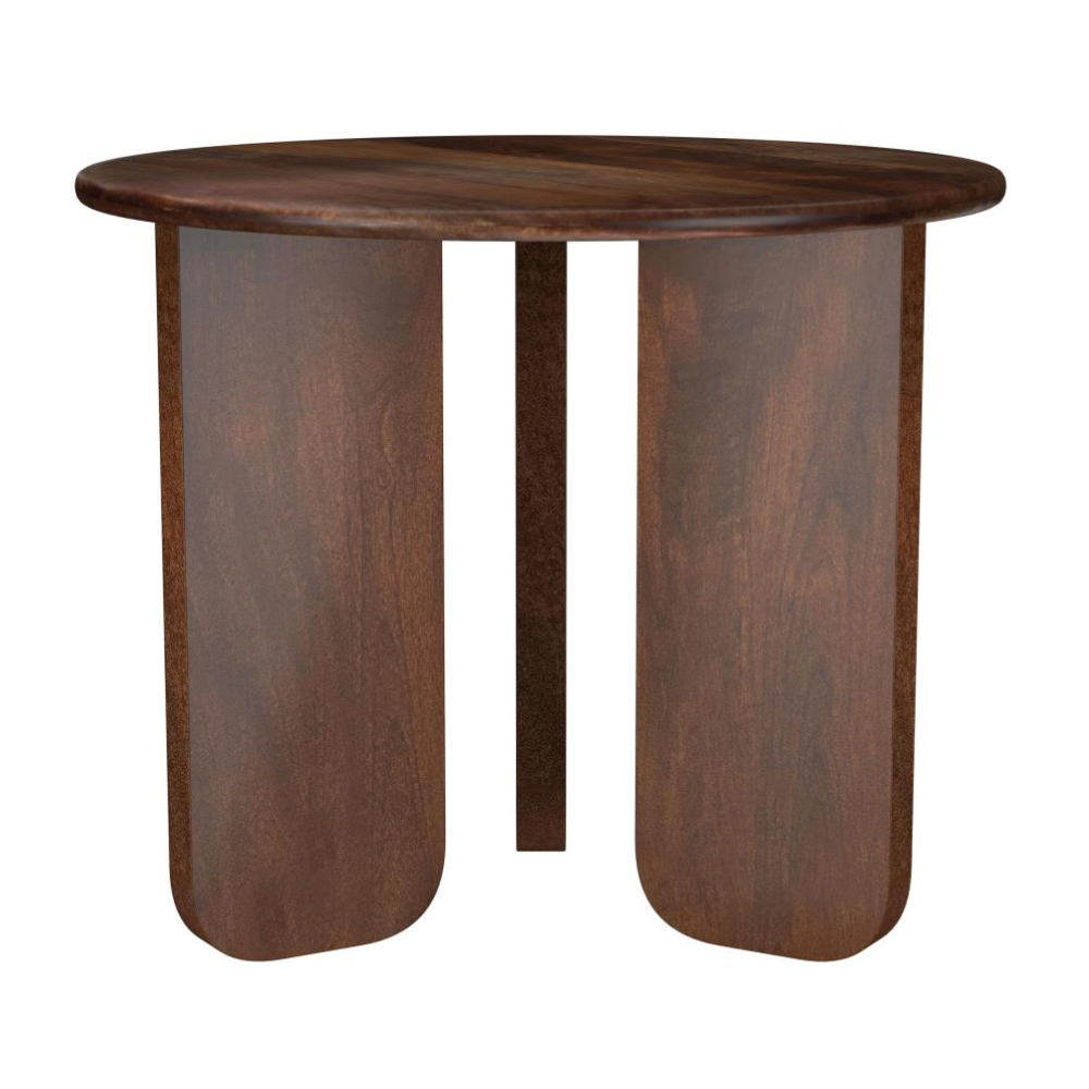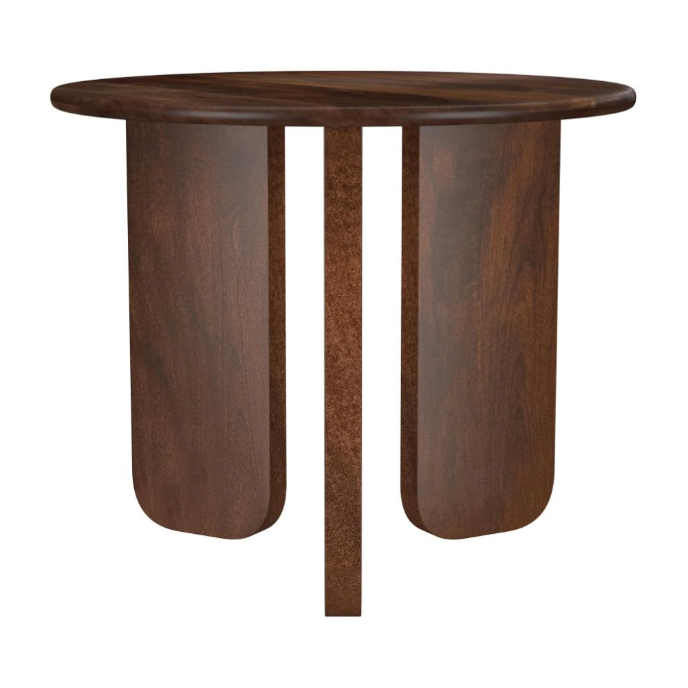 Elevate your space with this sculptural end table crafted from solid mango wood. A deep brown finish enhances its natural grain, while the bold base design adds modern artistry. Perfect for showcasing décor or everyday essentials.