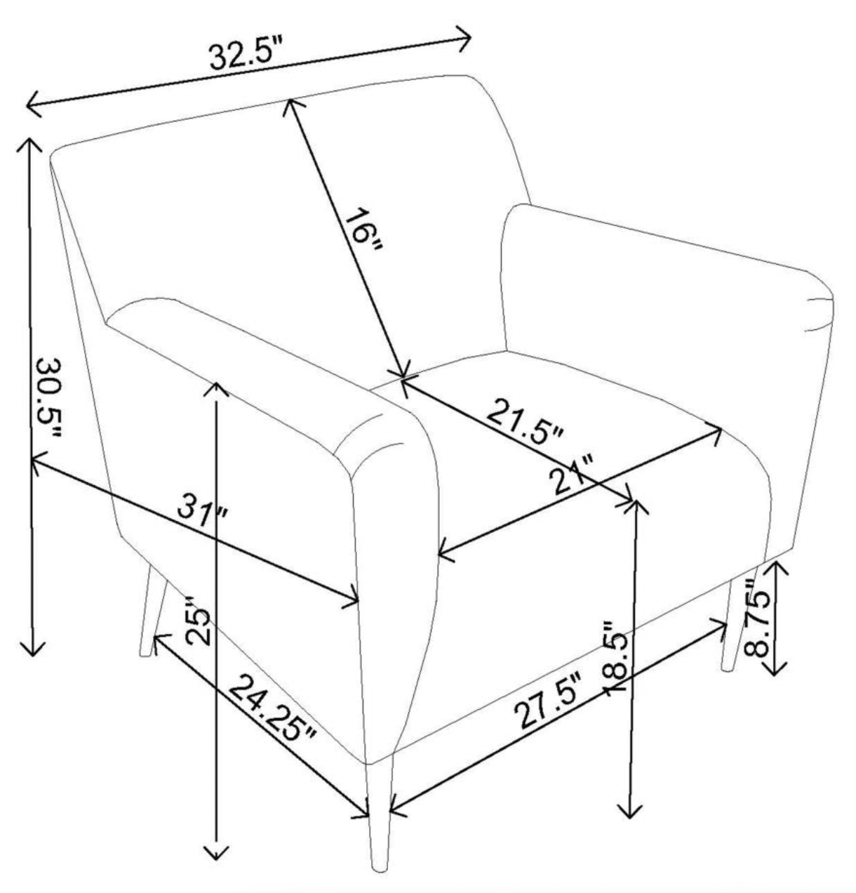 - Seat Size: W21.00" x D21.50" x H18.50"