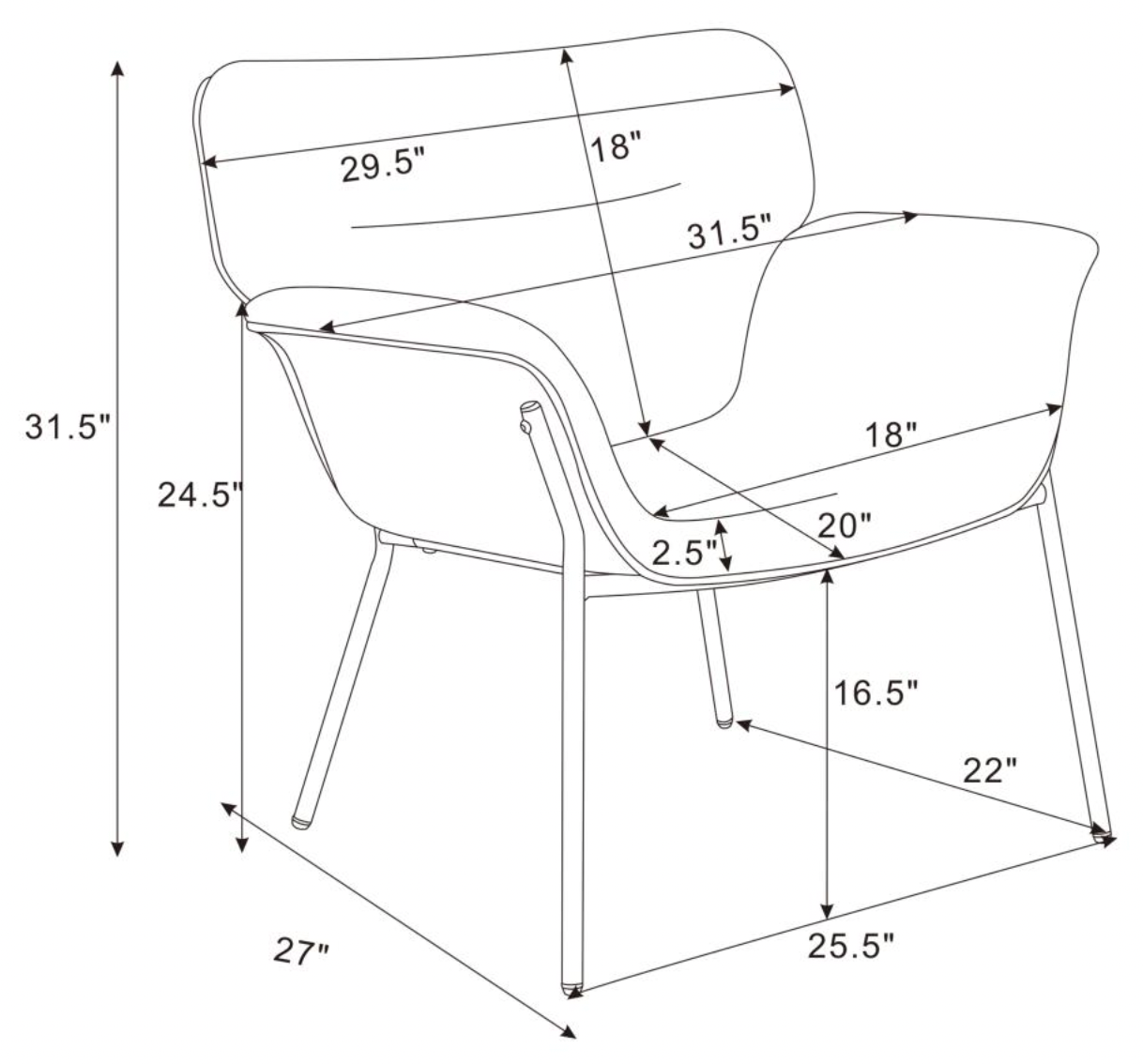 - Seat Size: W18.00" x D20.00" x H16.50"
