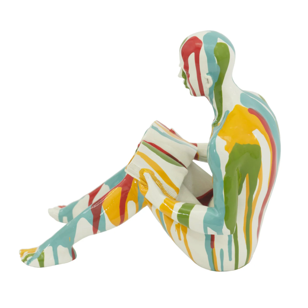 Elevate the originality of your decor with our Unique Reading Man Statue. This captivating piece serves as a special accent in your dining room, living room, office, or bedroom. With its bold design statement, it fits perfectly on shelves and tables, adding a touch of artistic flair to any space.