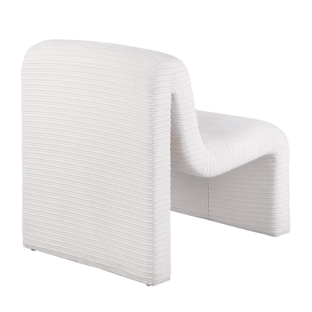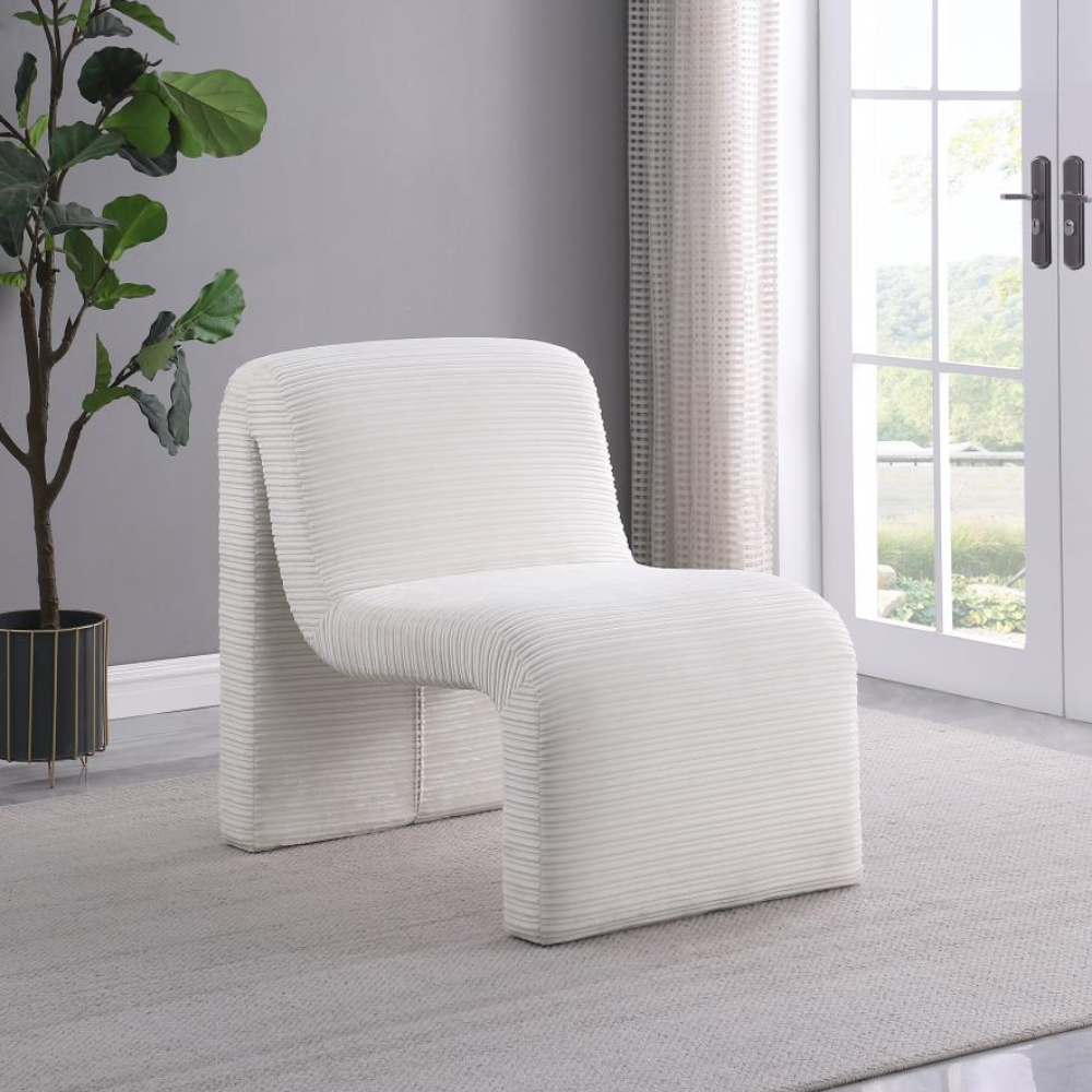 Introduce sculptural sophistication to your living space with this modern accent chair. Its sinuous, armless silhouette exudes artistic elegance, perfect for elevating any seating group. Upholstered in a neutral fabric with ribbed texture, it offers captivating depth and tactile interest. Built with a durable metal and plywood frame, the chair features foam padding for luxurious comfort. A versatile choice for living rooms or dens, its sleek, curvy design makes it a stunning standalone piece or a cohesive addition when paired.