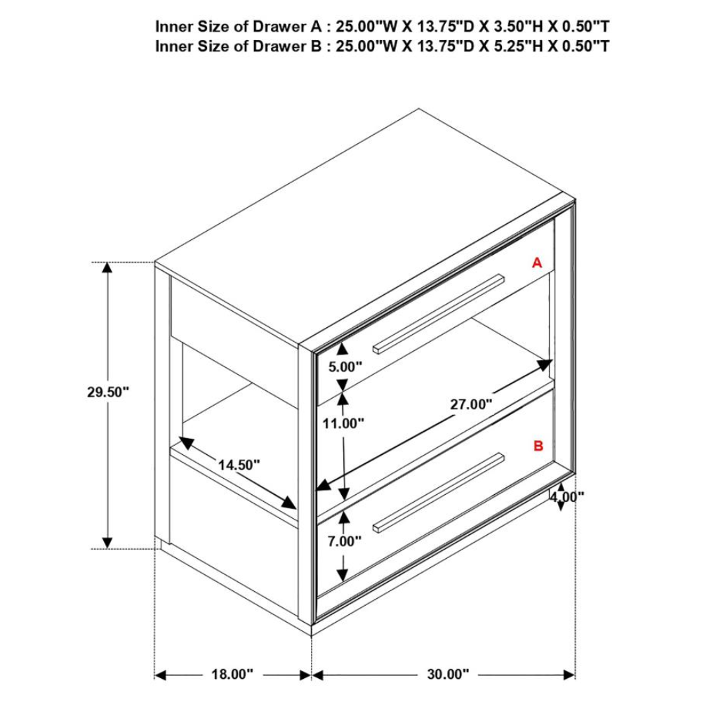| Nightstand | 30.00" | 18.00" | 29.50" | 59.50 lbs |