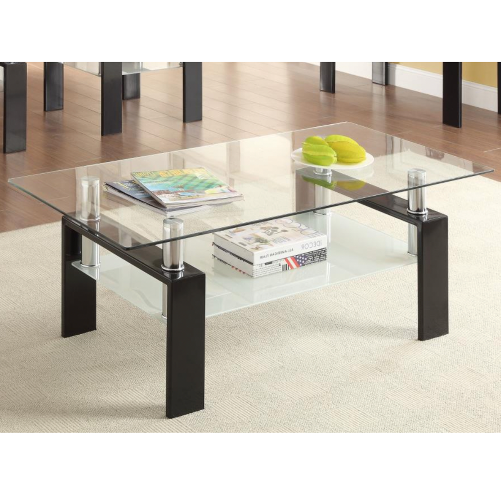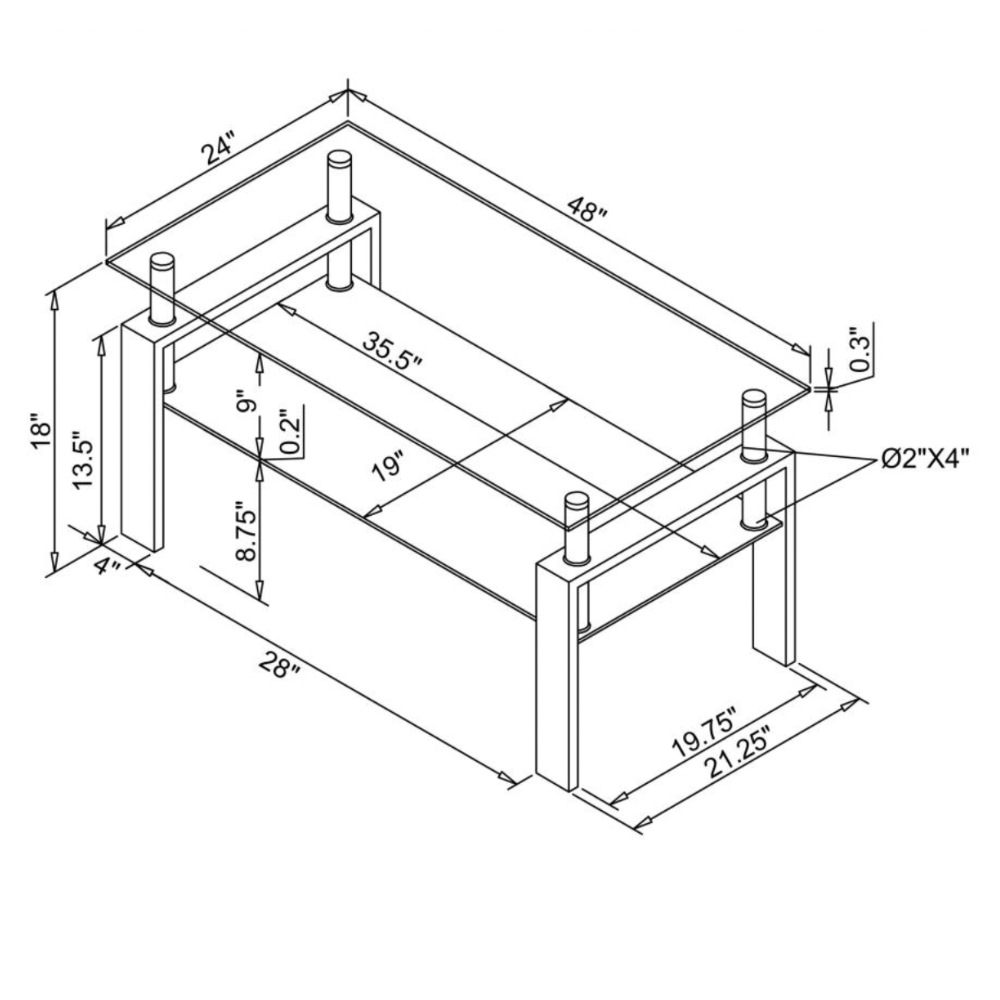 Elevate your living space with our cutting-edge coffee table, a masterpiece of contemporary design. Expertly crafted, this table features a sophisticated blend of materials and finishes, with clear tempered glass tops beautifully contrasted by frosted shelves. Glossy white metal legs, accented by chrome-finished cylinders, provide a sleek, modern look that adds edgy charm to any room. Perfect for those who appreciate both form and function, this coffee table is a stunning addition to any interior.