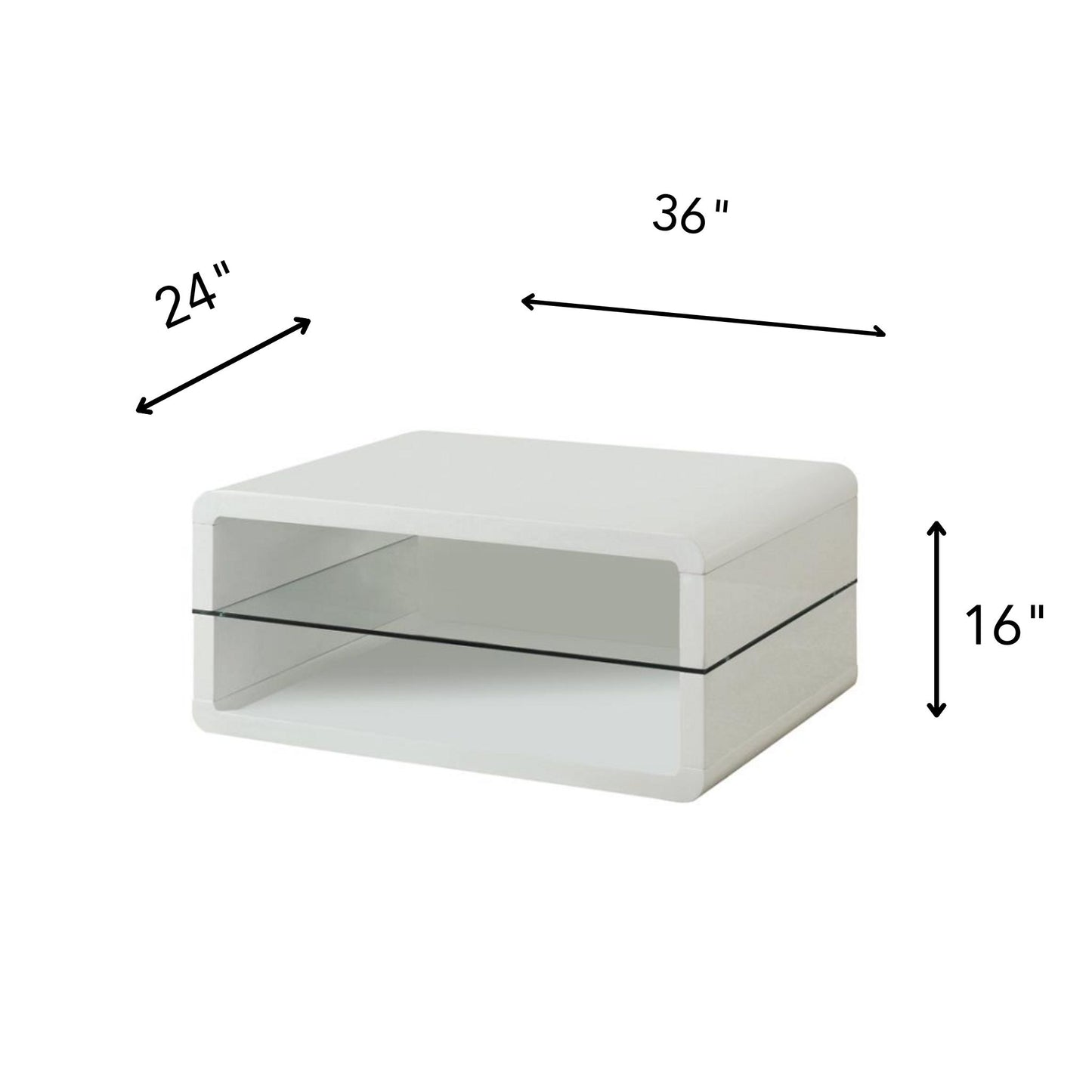 The ELENA Coffee Table combines style and functionality to elevate your living room's decor. Its glossy white finish and tempered glass shelf provide an elegant and practical solution for your storage and display needs. Whether you're entertaining guests or simply enjoying a quiet evening at home, this table is the perfect companion for your modern living space.