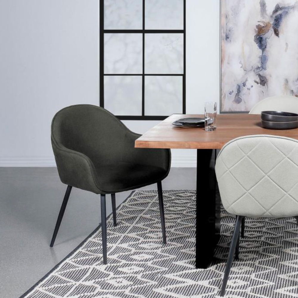 Introduce modern sophistication to your dining area with these timeless dining side chairs. Featuring a gracefully curved silhouette and full wrap-around seat design, they offer both visual appeal and supportive comfort. Diamond-patterned stitching lends a touch of contemporary elegance, while rich upholstery adds a layer of luxurious texture. Whether you're hosting dinner parties or enjoying daily meals, these chairs provide a seamless blend of style and functionality that complements any modern or transitional dining space.