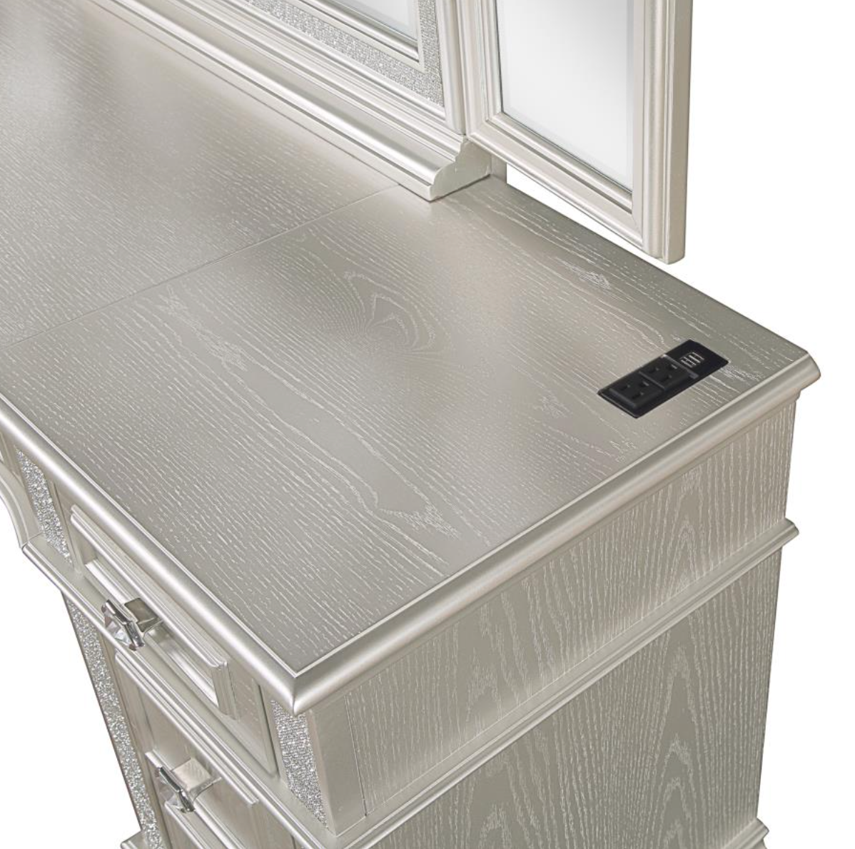 EVANGELINE 4-drawer Vanity Table with Faux Diamond Trim