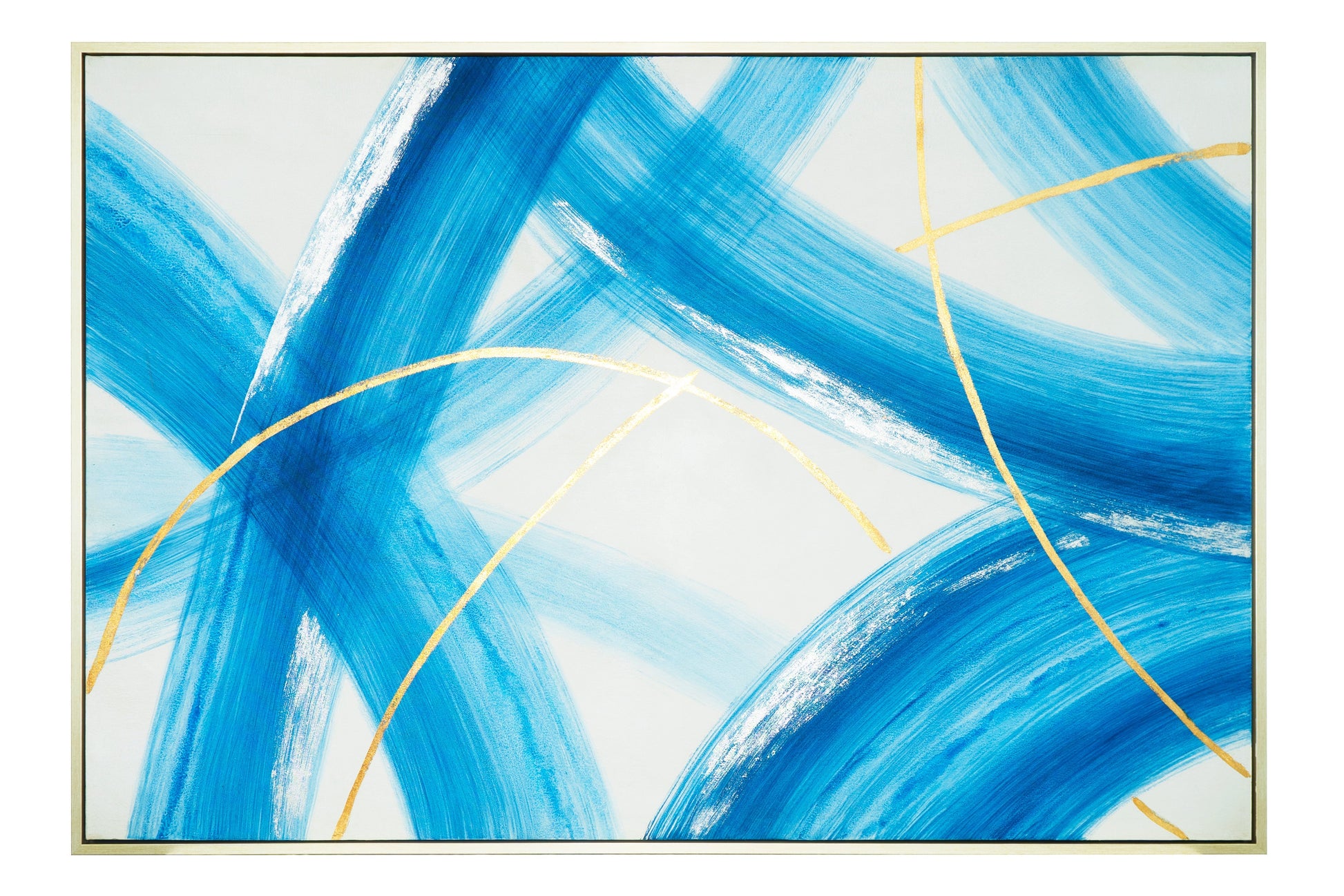 EZRA Blue Brush/Gold Hand Painted Canvas Wall Art
