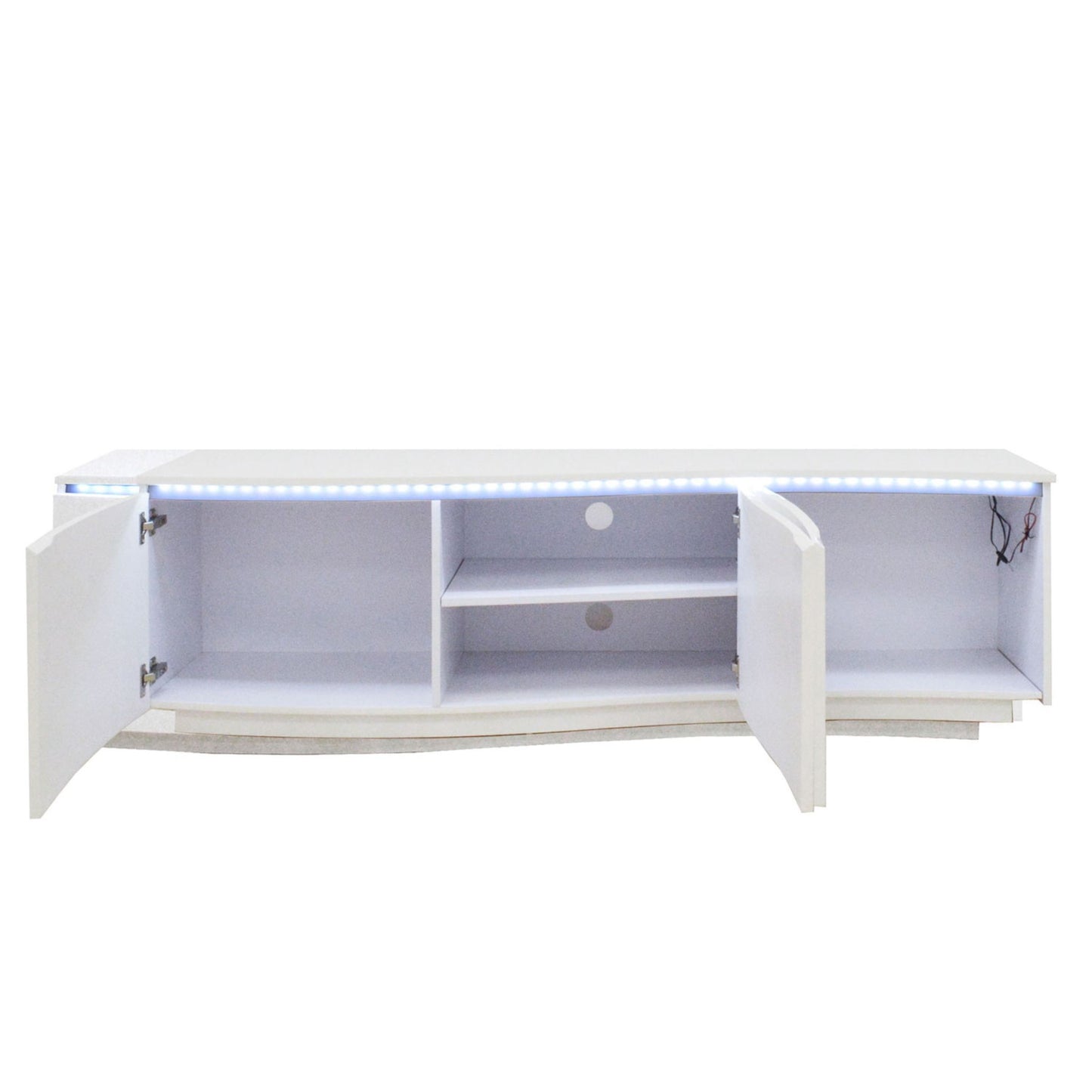 - Glossy White Finish: The TV stand features a glossy white finish that exudes modern elegance and brightens up your living area, creating a fresh and contemporary ambiance.