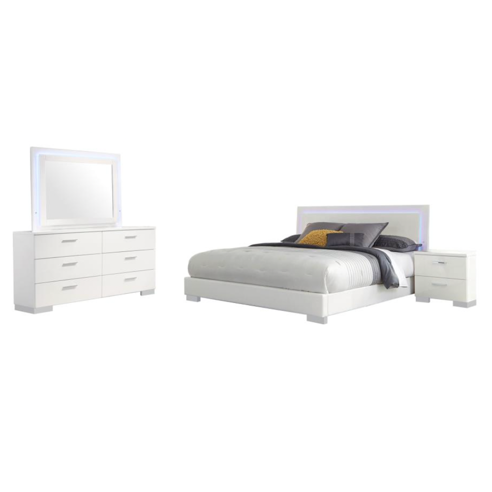 FELICITY 4-piece Eastern King Bedroom Set White High Gloss