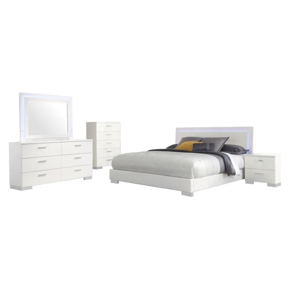 FELICITY 5-piece Eastern King Bedroom Set White High Gloss