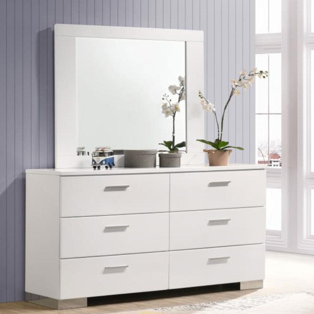 FELICITY 6-drawer Wood Dresser with Mirror White High Gloss