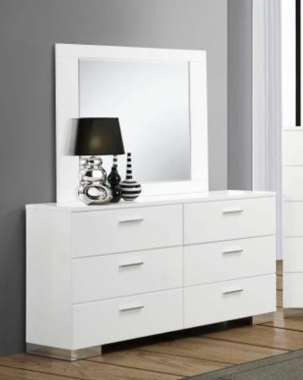 Elevate your bedroom with the FELICITY Glossy White Dresser, a sleek and modern storage solution for your essentials. Revitalize your master or guest suite with our contemporary bedroom set.