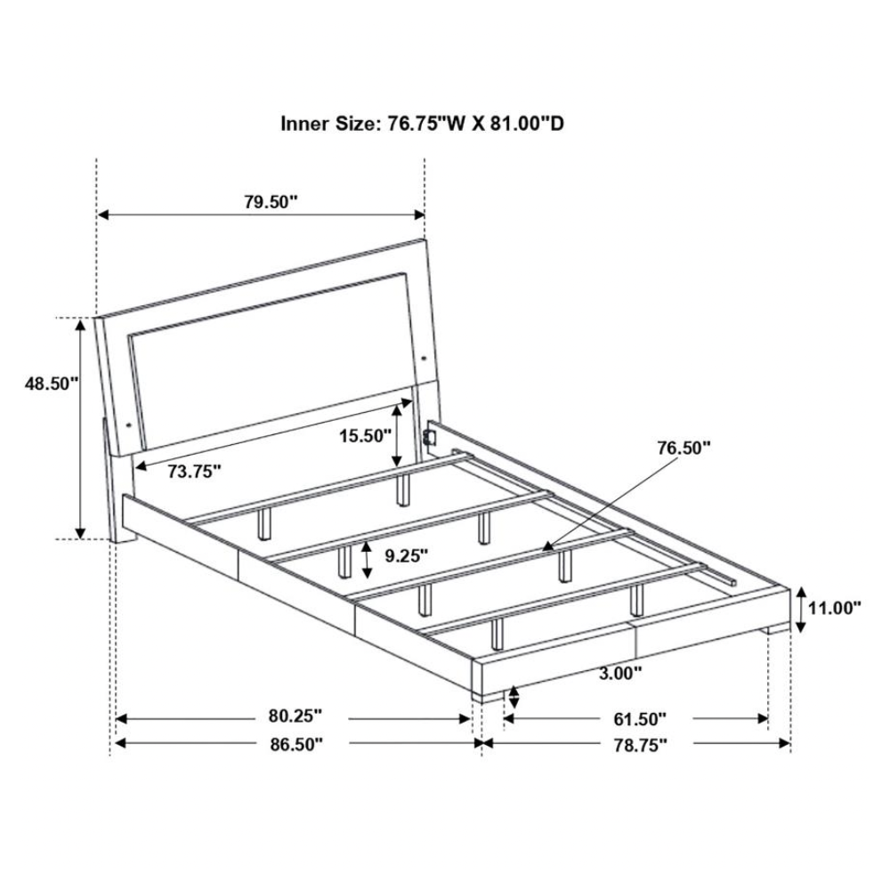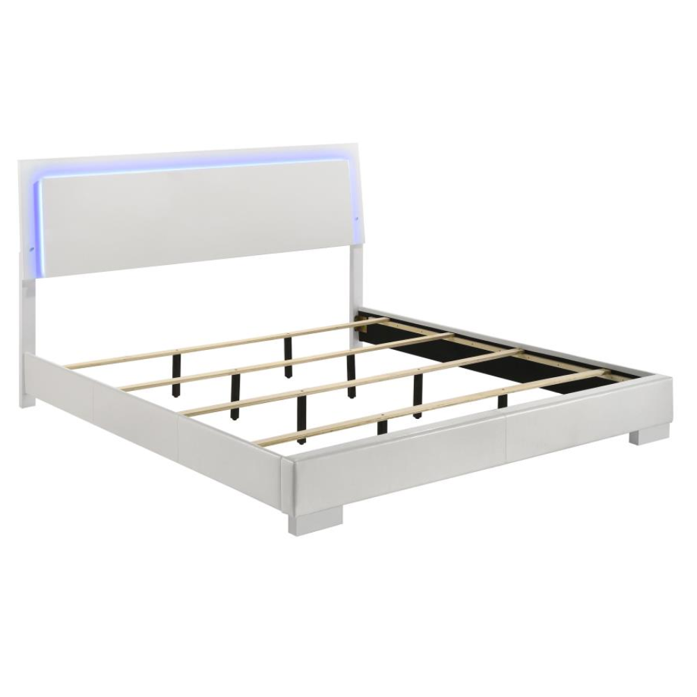 FELICITY Wood Eastern King LED Panel Bed White High Gloss