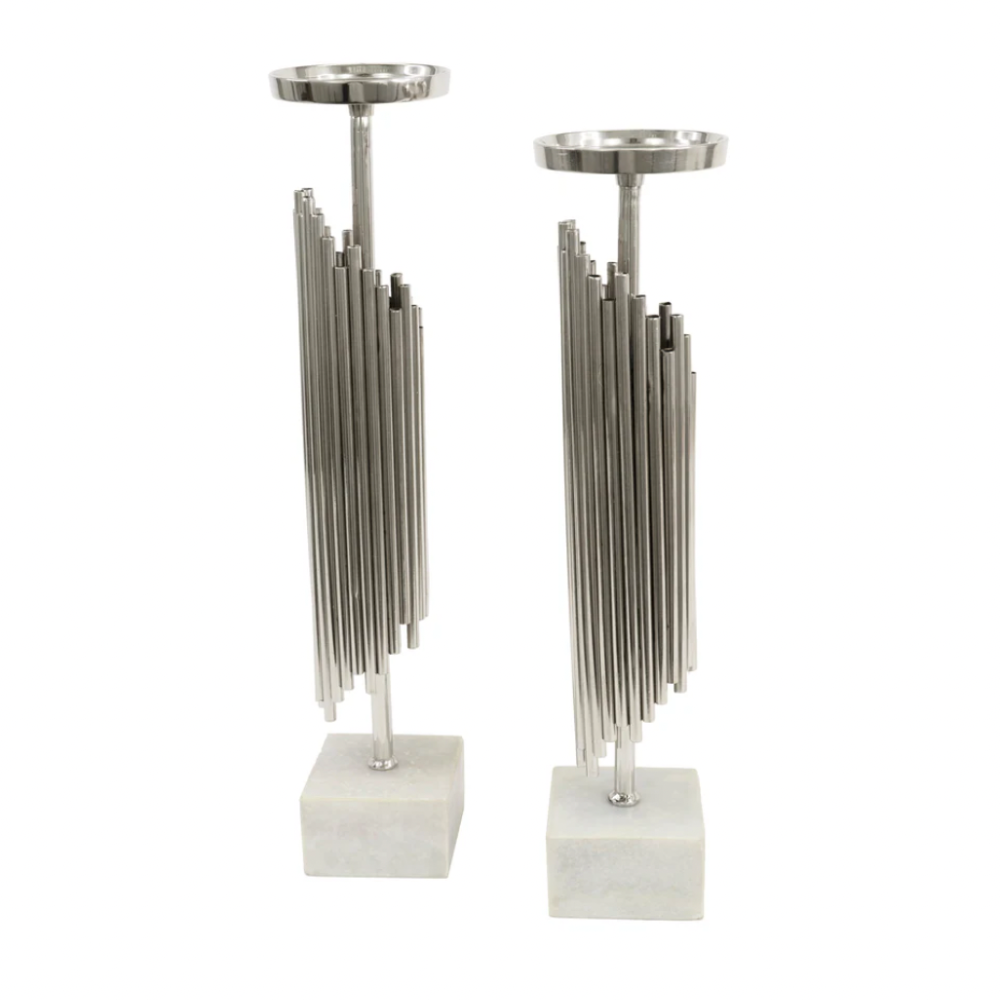 Introduce modern elegance to your home with our 2pc Gold Tube/White Marble Candle Holders Set. Combining sleek gold tubing with luxurious white marble bases, these candle holders offer a stylish way to display your favorite candles while adding a sophisticated touch to your decor. This set perfectly blends contemporary and classic design, making it a standout addition to any room.