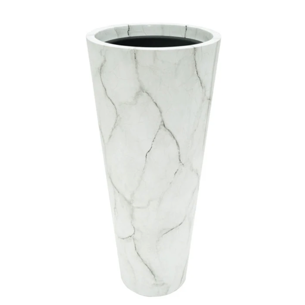 This elegant marble vase is the perfect contemporary addition to your home decor. With its sleek marble print, this vase adds a sophisticated touch to any space, whether used as a solo accent piece or for displaying flowers and decorative sticks. Its versatile design makes it ideal for any corner, entryway, or staircase, effortlessly elevating your interior. Crafted from the finest lightweight fiberglass material, this vase combines durability with modern style.