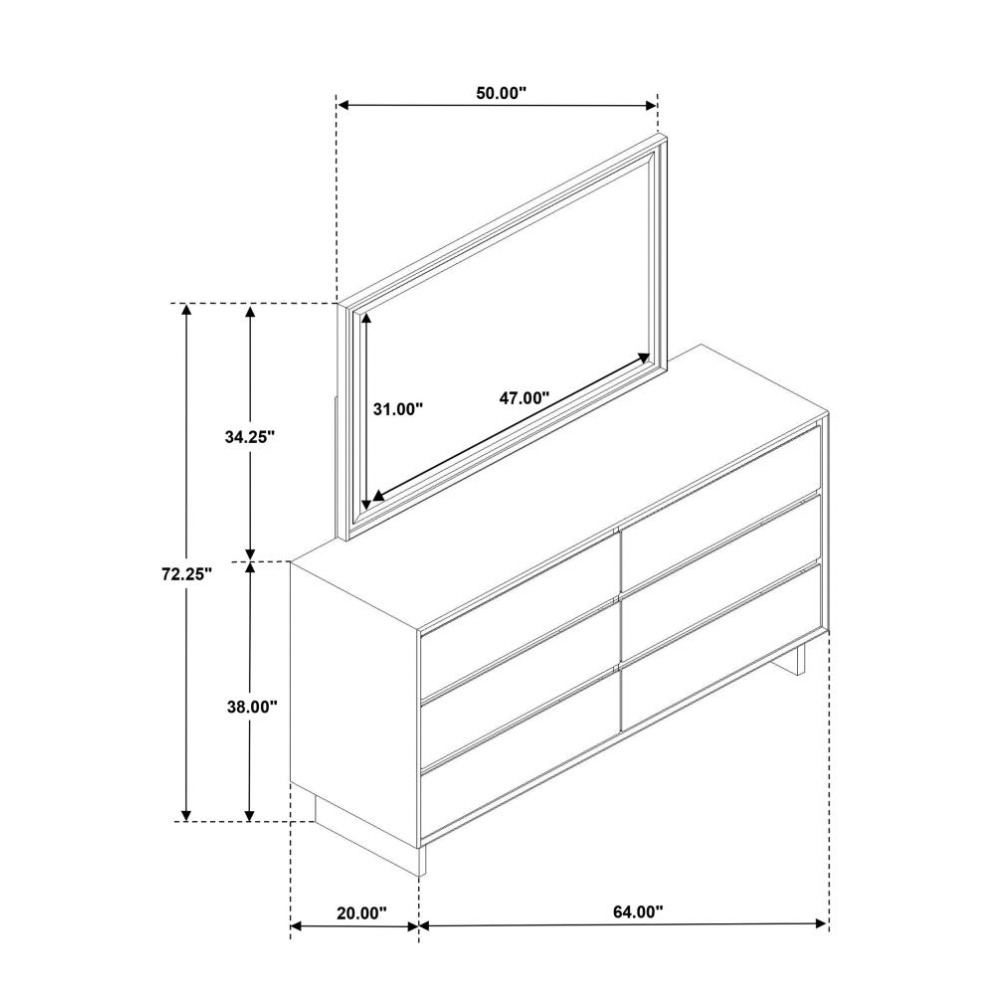 | Dresser With Mirror | 64.00" | 20.00" | 72.25" | 223.15 lbs |
