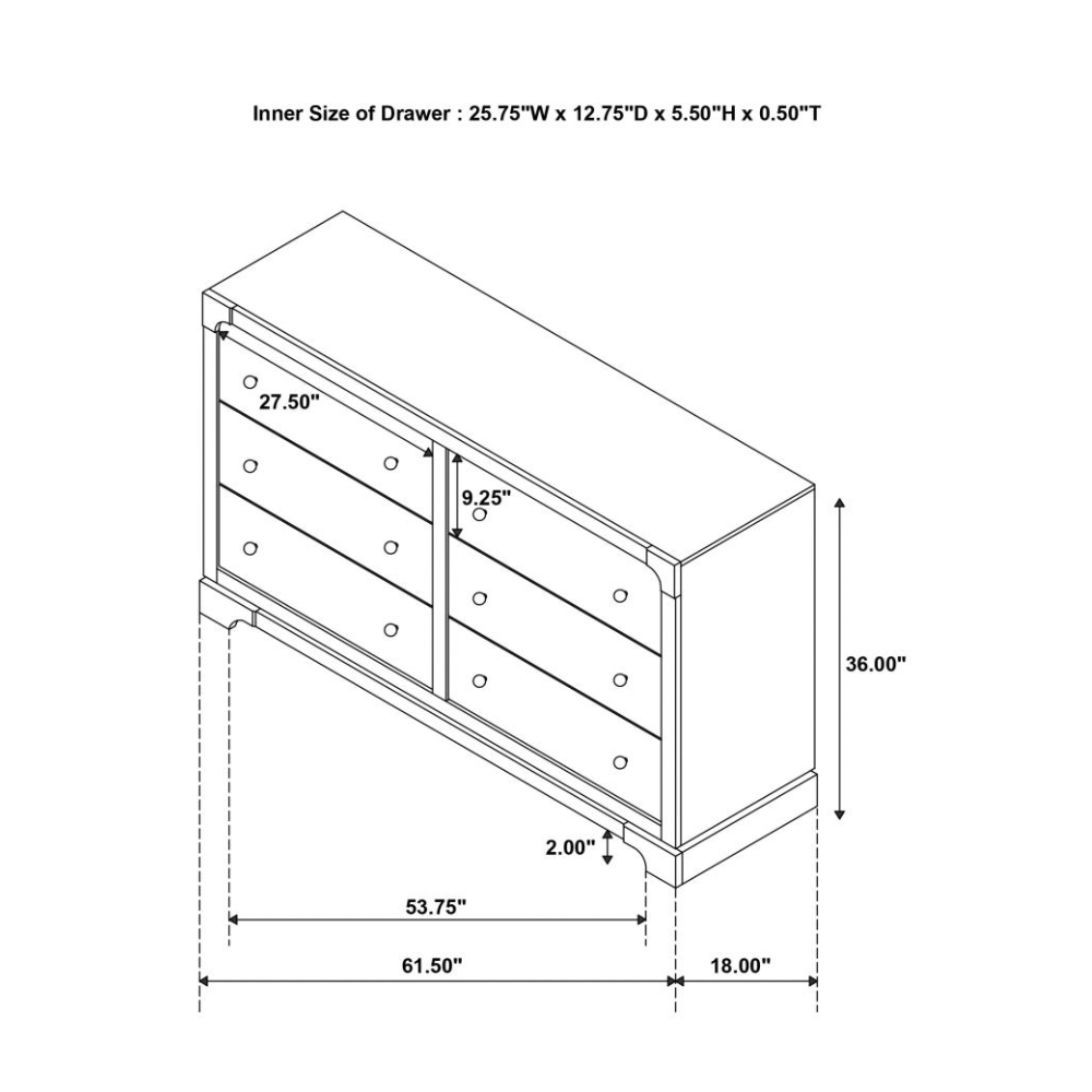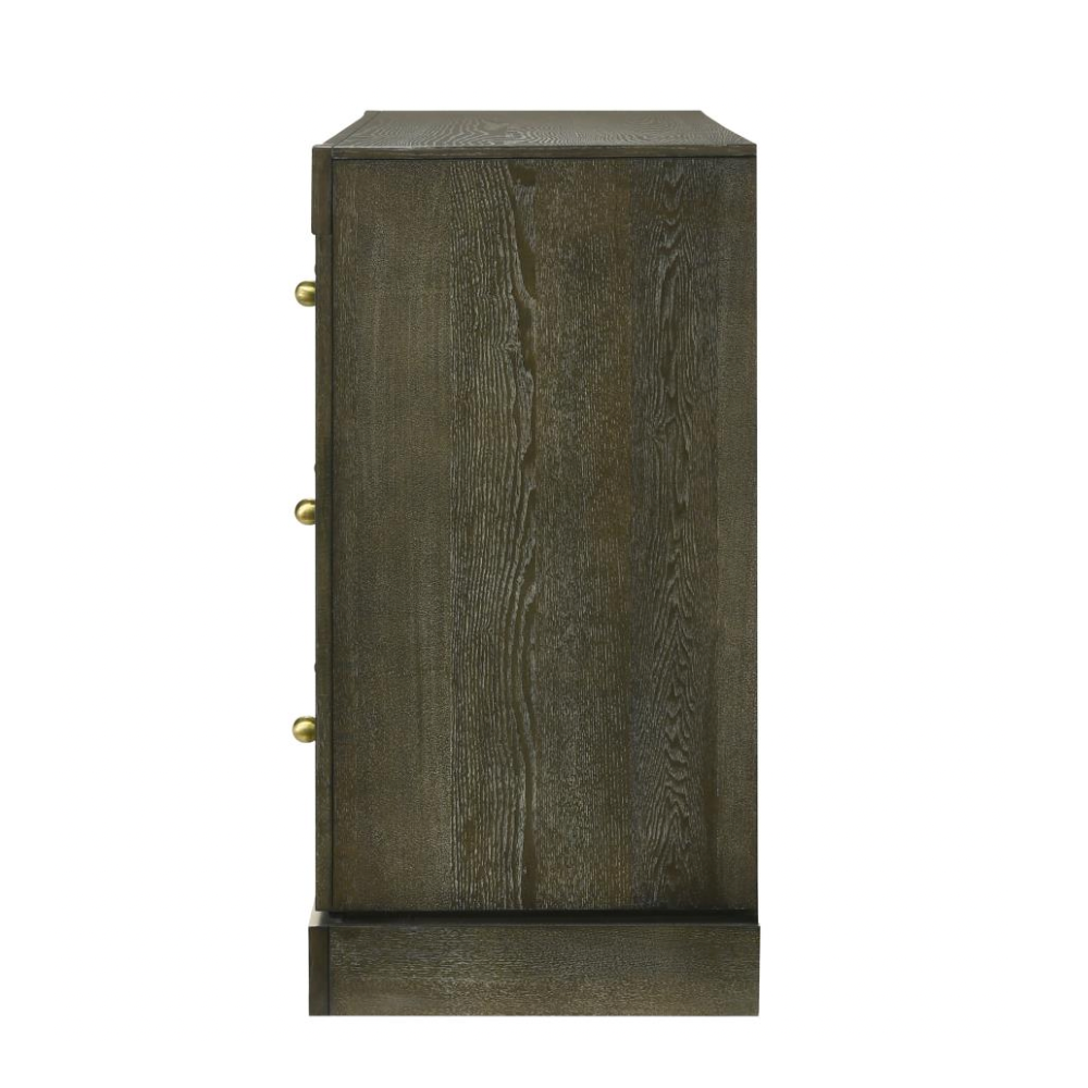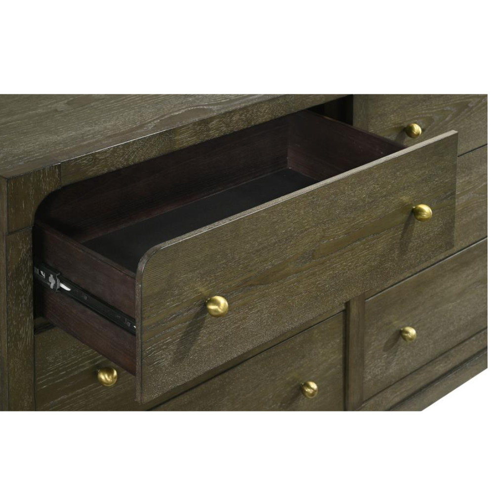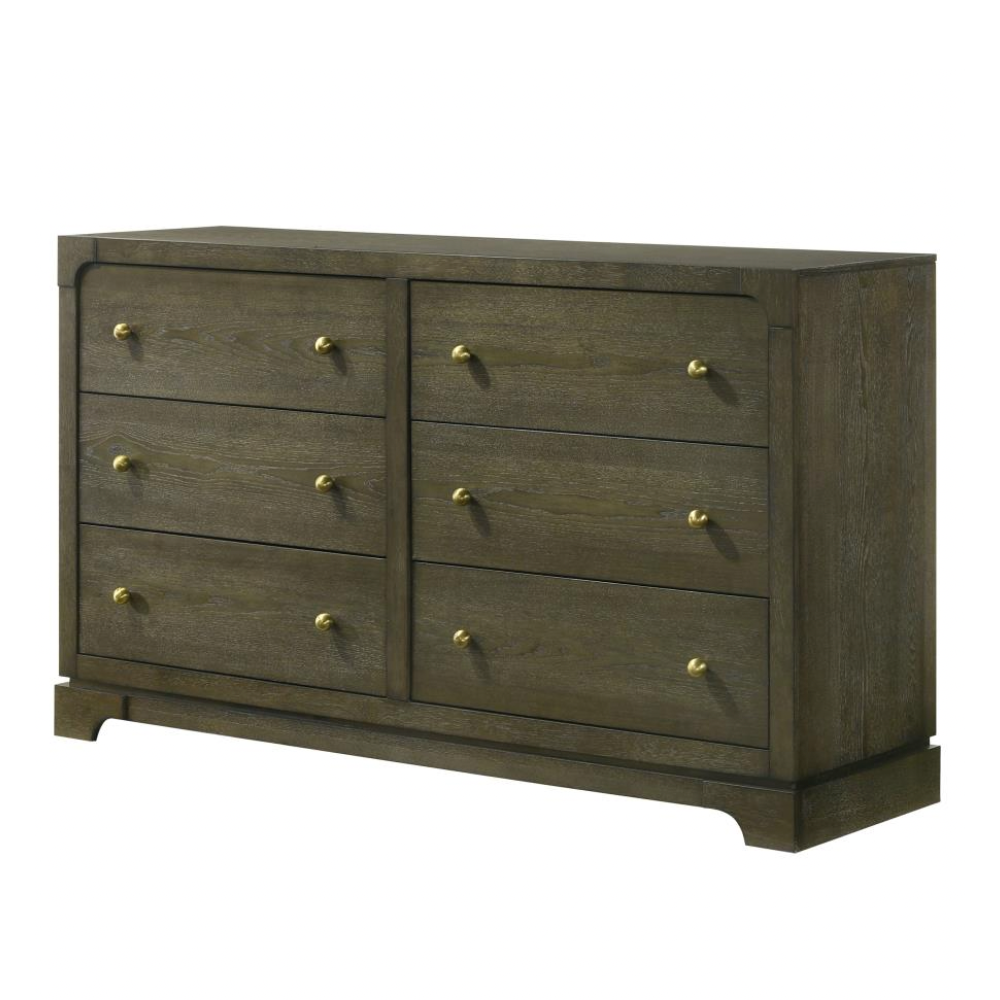 Add a touch of refined elegance to your bedroom with this spacious 6-drawer dresser, designed in a timeless transitional style. Rounded corners and trending design elements soften the silhouette, while the rich dark cocoa finish and brass knobs offer classic sophistication. Crafted with solid hardwood, ash veneer, and MDF, this dresser promises lasting durability. Solid wood drawer boxes with English dovetail joinery and 45mm metal ball-bearing glides ensure smooth, long-term functionality. Felt-lined top drawers add a luxurious touch, perfect for delicate items and upscale organization.