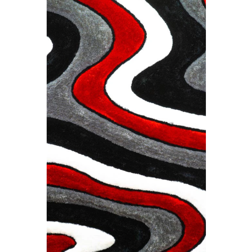 HALLE 3D Wavy Shaggy Area Rug Red