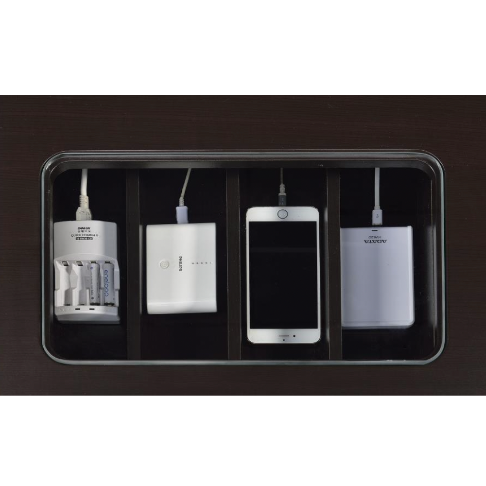 - Device Visibility: Clear tempered glass insert on desktop offers easy viewing of devices