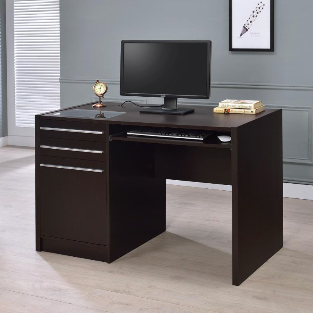 - Modern Functionality: Connect-It desk in rich cappuccino finish blends tech and style
