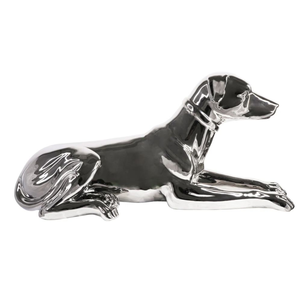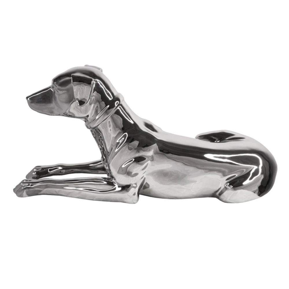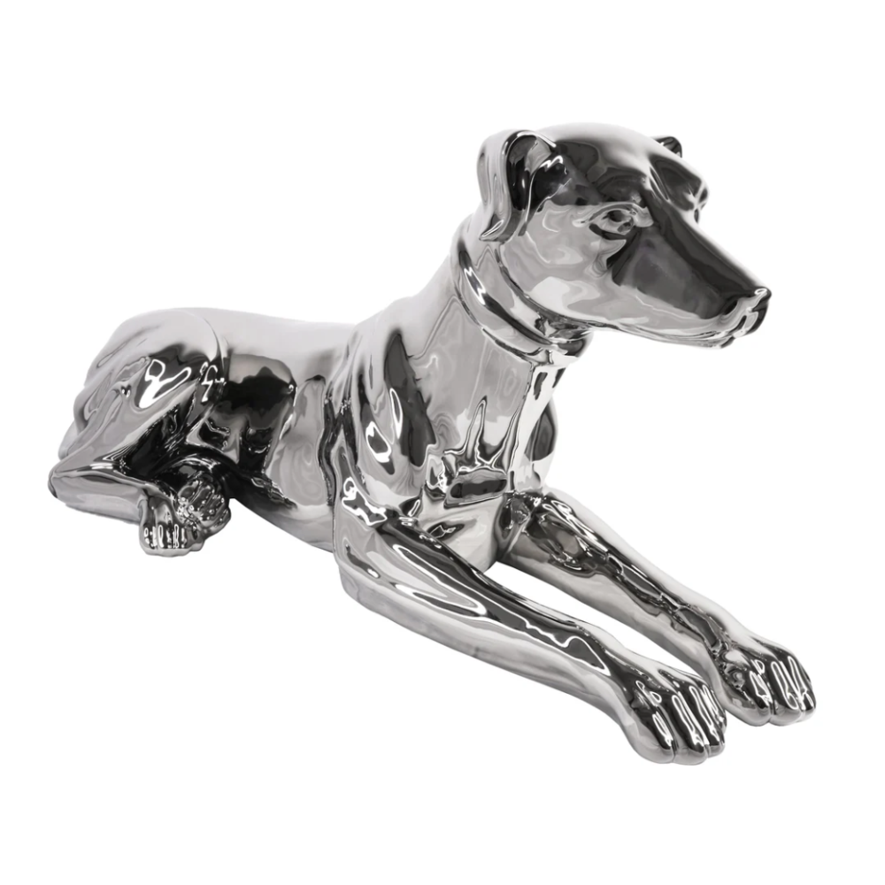 Expertly crafted, this ceramic sculpture of a greyhound dog brings elegance and grace to any room. With its sleek silver finish and refined details, this statue captures the timeless beauty of the beloved breed. Perfect for placing on shelves, mantels, or console tables, this sculpture adds a sophisticated touch to your decor, blending seamlessly into modern and classic settings alike.