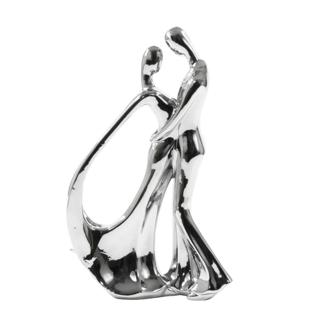 True love stories never have endings, and this Contemporary Couple's Sculpture beautifully materializes the essence of love. The modern male figure gently holds the female by the waist in a dance, symbolizing grace and affection. Crafted from high-quality polystone with polished silver finishes, this distinctive sculpture is a striking piece for your home.