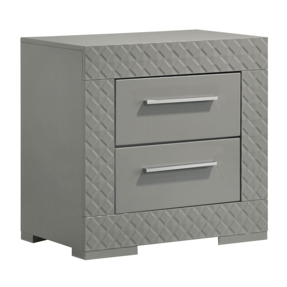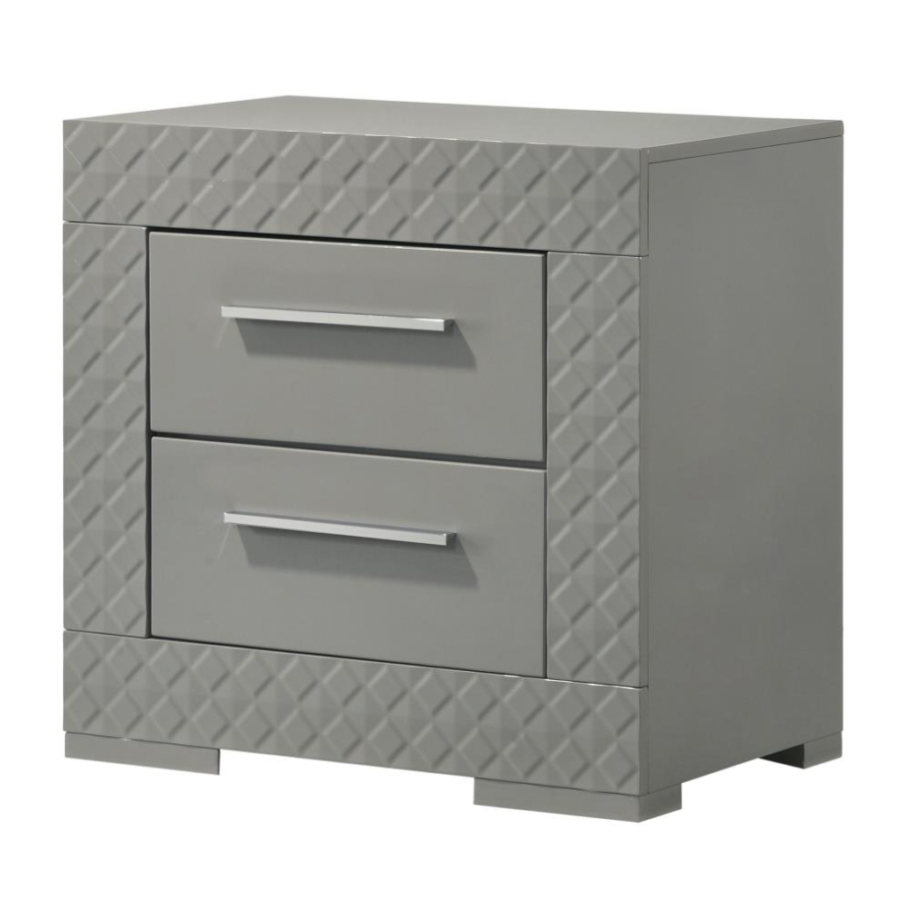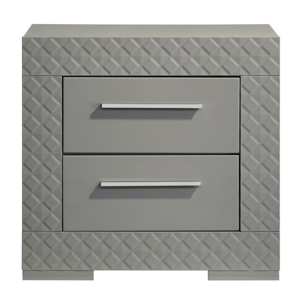 IVES 2-drawer Nightstand Bedside Table Grey High Gloss