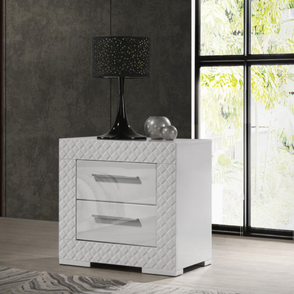 IVES 2-drawer Nightstand Bedside Table White High Gloss