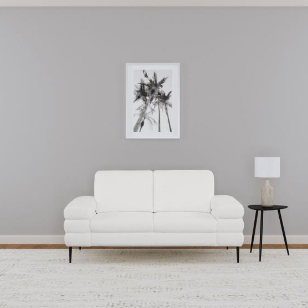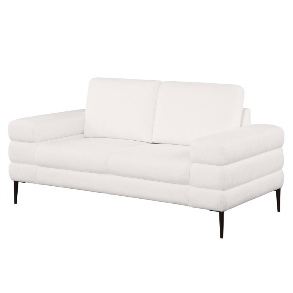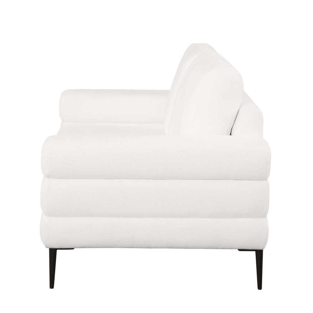 - Stylish Design: Ivory loveseat with distinctive tube-like geometric sculptured track arms.