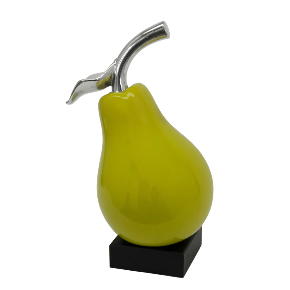 Introducing the Modern Green Pear Tabletop Kitchen Decorative Sculpture, where contemporary style meets natural beauty. Expertly crafted from high-quality ceramic, this charming pear sculpture brings a refreshing touch of nature to your kitchen or dining area. Mounted on a sleek wood base, its vibrant green finish adds a pop of color while maintaining an elegant aesthetic, making it the perfect accent piece for your modern decor.