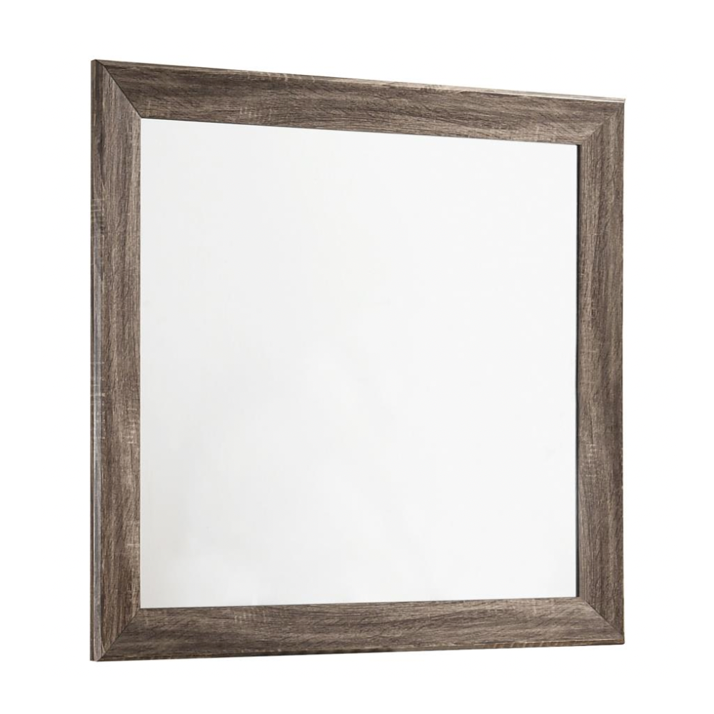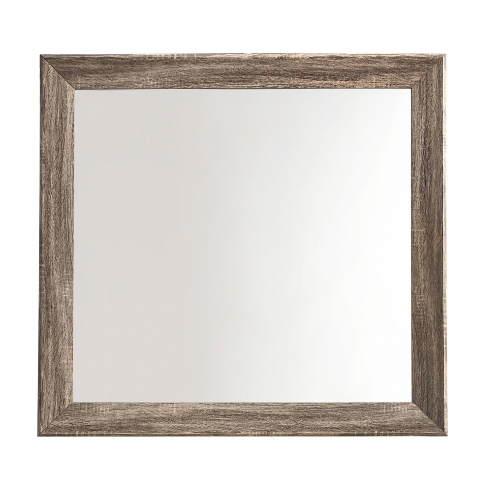 Complete your contemporary bedroom setup with this modern wood dresser mirror. Finished in a soft washed taupe, the mirror’s long, clean lines and crisp angles bring a minimalist flair while creating a sense of height and openness. The frame’s natural oak exposed wood grain adds a rustic yet refined touch, making it a perfect companion to a coordinating dresser or a striking accent piece on its own. Its versatile design complements a wide range of décor styles, from modern to transitional.