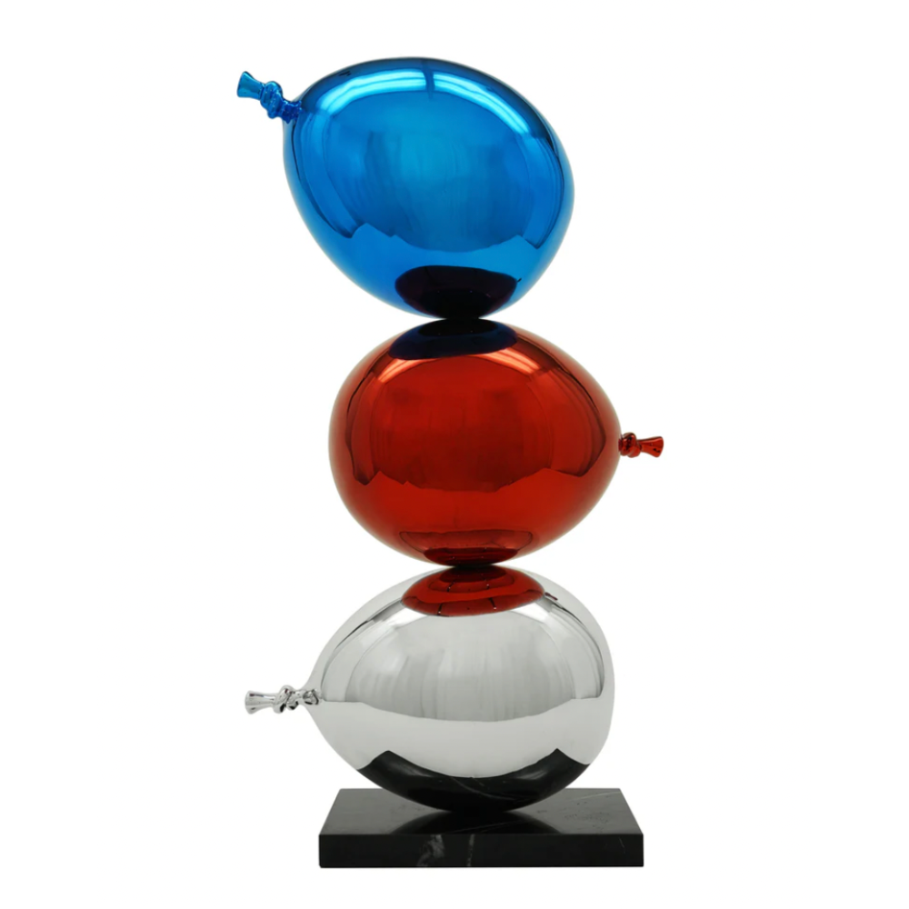 Take your space to the next level with our Large Balloon Tower Sculpture. This striking modern piece stands tall, featuring chrome-colored balloons that create a bold visual impact. Anchored by a sleek marble base, it adds a grand and sophisticated touch to any room, making it the perfect statement piece for those looking to elevate their decor with modern elegance.
