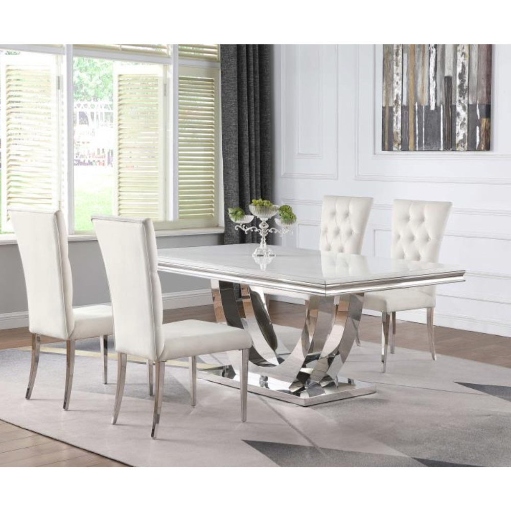 - White Faux Marble Tabletop: Keeps a classic and clean expression in your dining space.