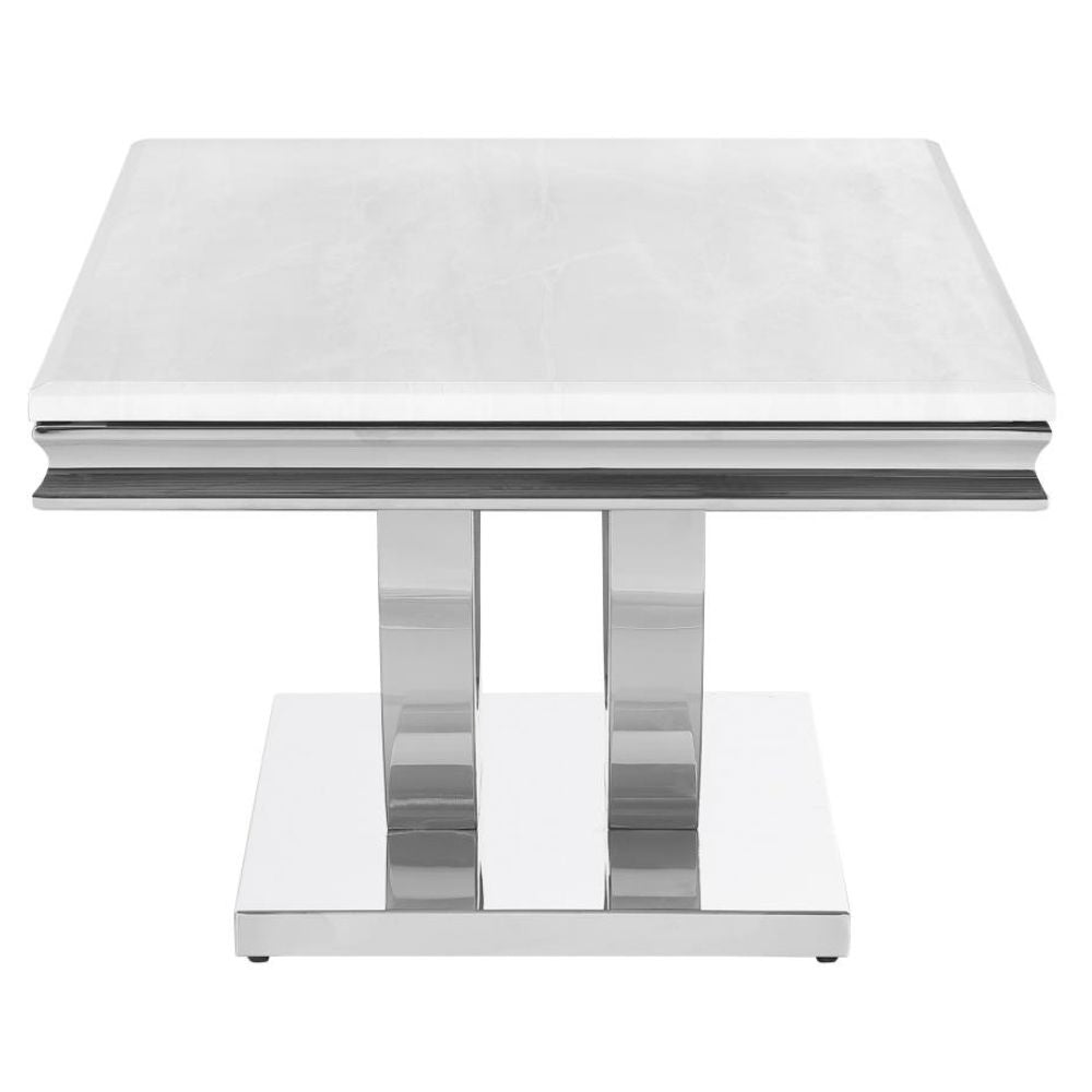 KERWIN Rectangular Stone Top Coffee Table White and Chrome