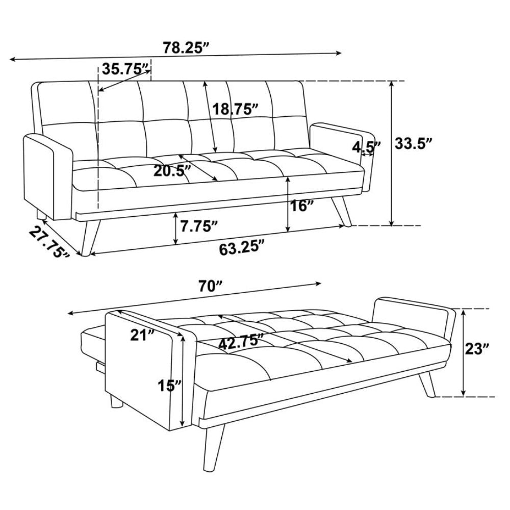 Enhance your interiors with our mid-century modern sofa beds. Wrapped in finely upholstered fabric, these pieces exhibit a sleek tufted design. Seamlessly transitioning from a chic sofa to a comfortable bed, they epitomize versatility. Supported by durable construction and natural-finished, angular tapered legs, these sofa beds are a blend of style, function, and stability, perfect for contemporary living spaces.