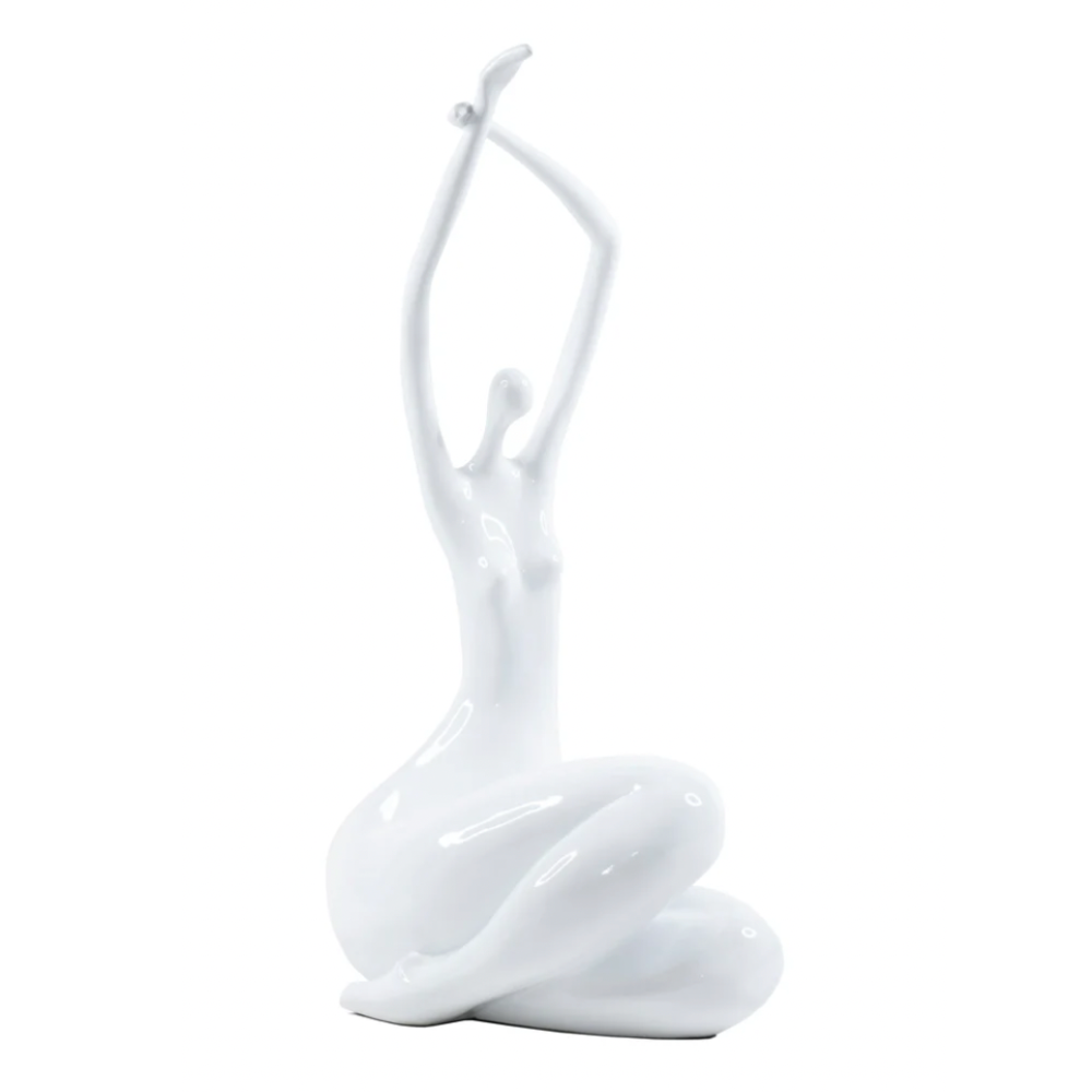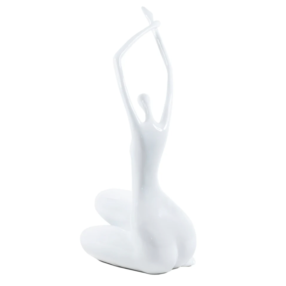 This Elegantly Positioned Contemporary Female Sculpture captures the essence of freedom with its expressive hands-up pose. Fabricated from high-quality polystone material and finished in a glossy sheen, this striking sculpture is available in both white and red. The modern art piece serves as an eye-catching accent, bringing a bold and artistic touch to any table or display in your home.