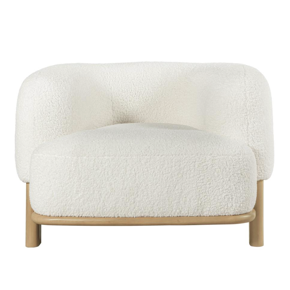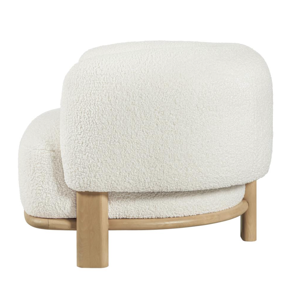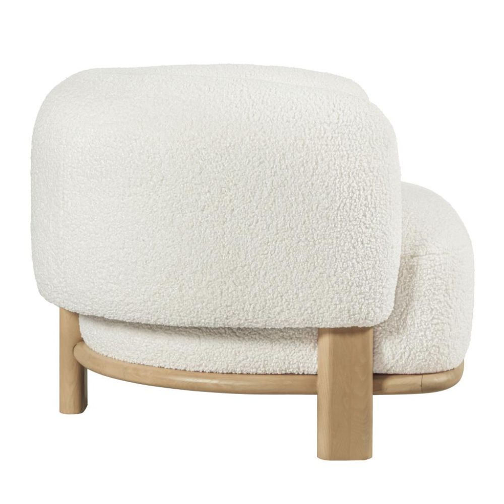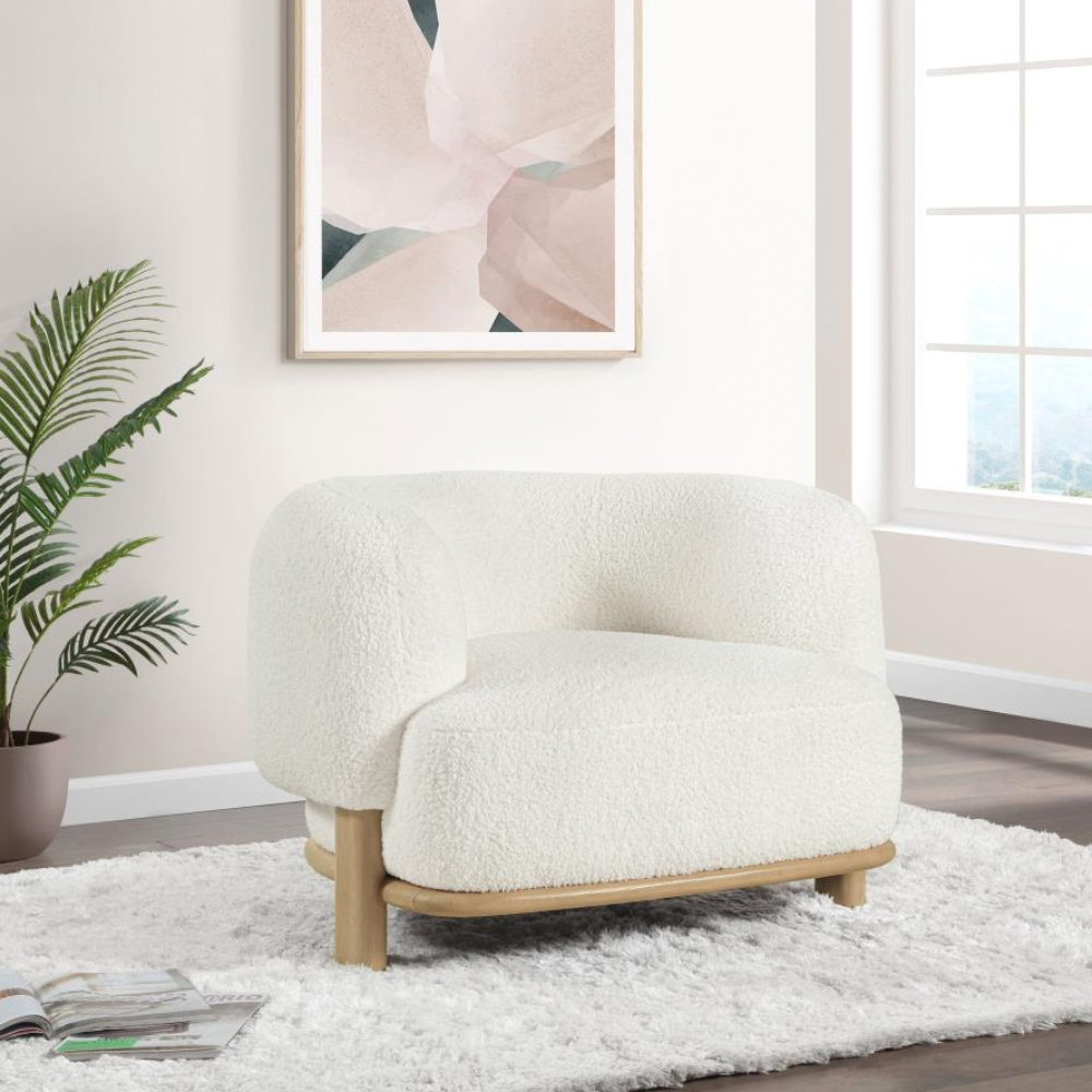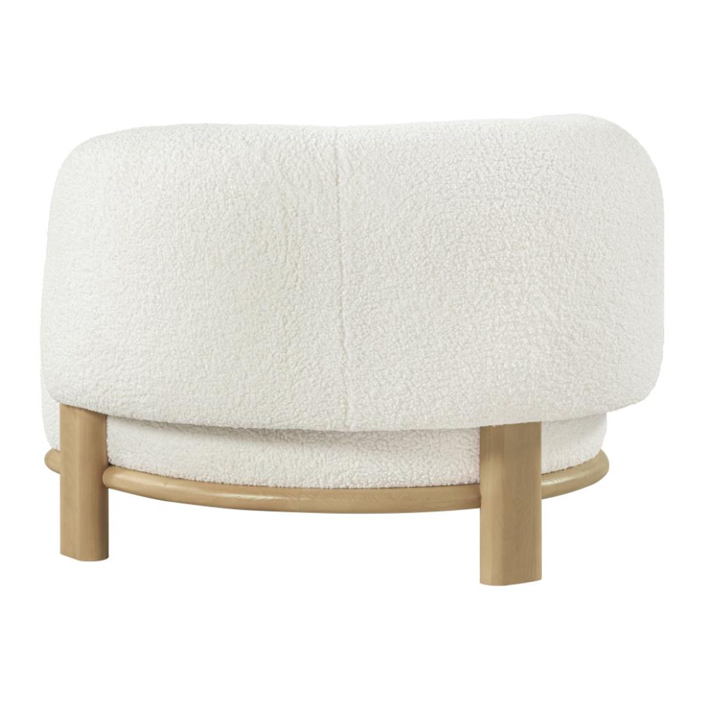 Enhance your living space with the sophisticated charm of this modern accent chair. Featuring a classic barrel-back silhouette, it combines bold, enduring lines with a plush, welcoming aesthetic. The heavily textured upholstery in a neutral tone effortlessly complements your existing decor while adding visual intrigue. A sturdy wood frame, accented with exposed oak-finished details, brings a natural, calming element to the design. Perfect for relaxing or entertaining, this chair pairs beautifully with colorful accents for a touch of personality.