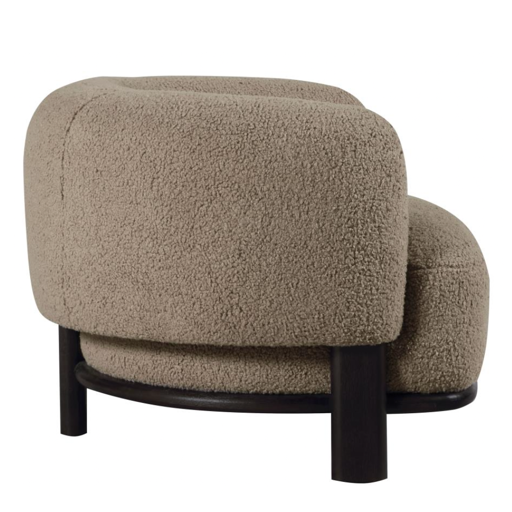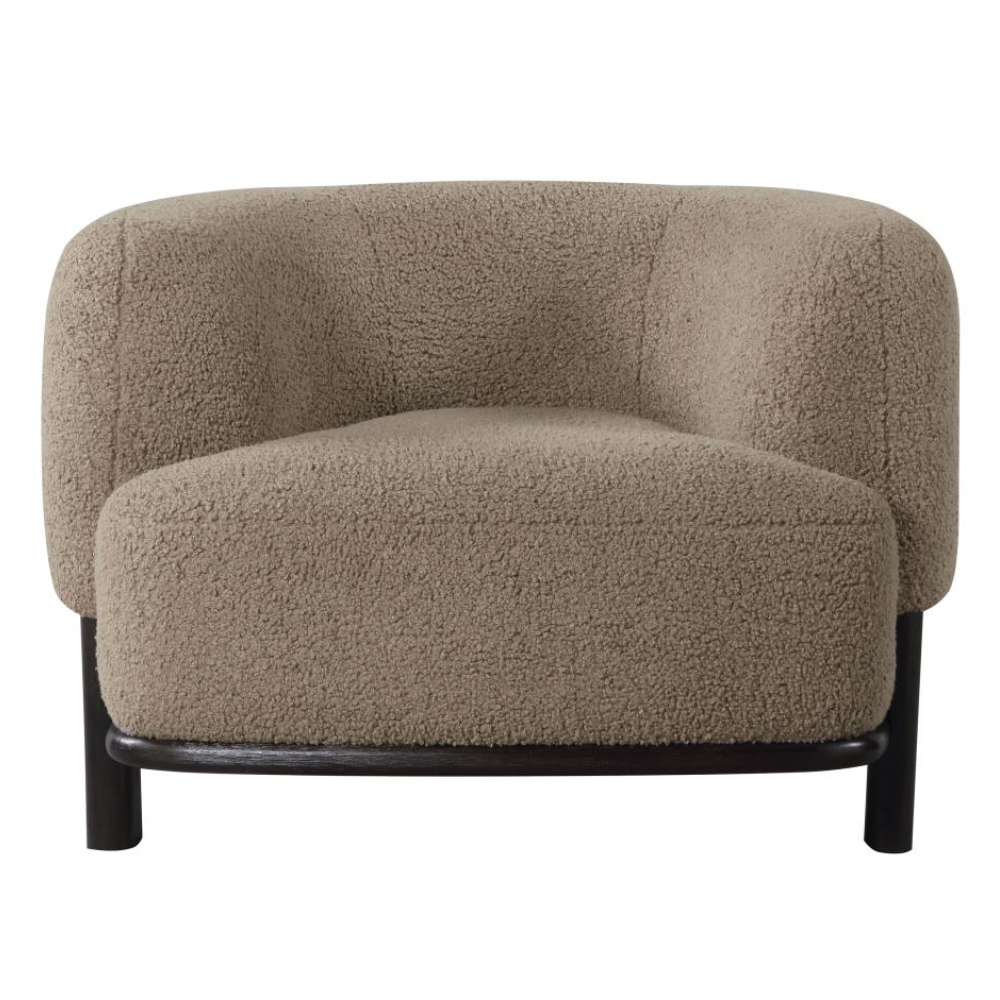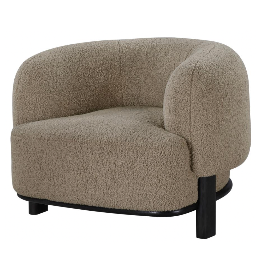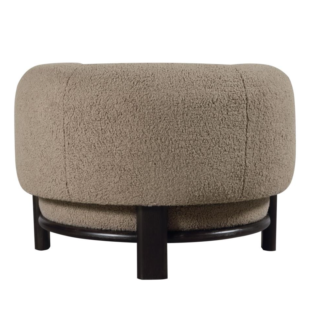 Enhance your living space with the sophisticated charm of this modern accent chair. Featuring a classic barrel-back silhouette, it combines bold, enduring lines with a plush, welcoming aesthetic. The heavily textured upholstery in a neutral tone effortlessly complements your existing decor while adding visual intrigue. A sturdy wood frame, accented with exposed oak-finished details, brings a natural, calming element to the design. Perfect for relaxing or entertaining, this chair pairs beautifully with colorful accents for a touch of personality.