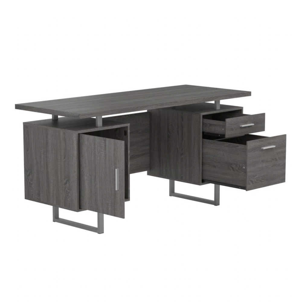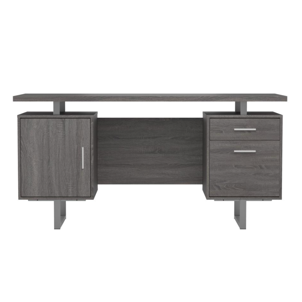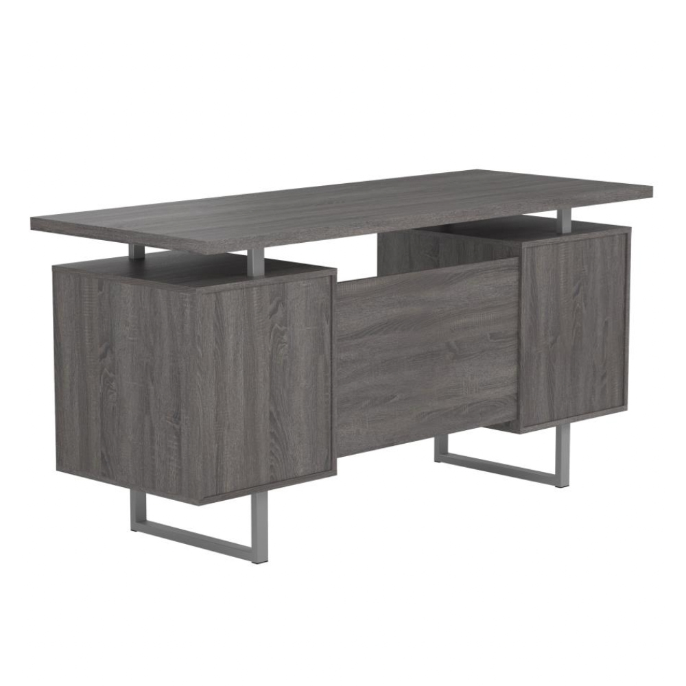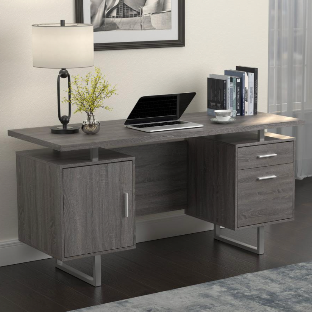 - Stylish Functionality: Modern office desk with a weathered grey finish and floating tabletop