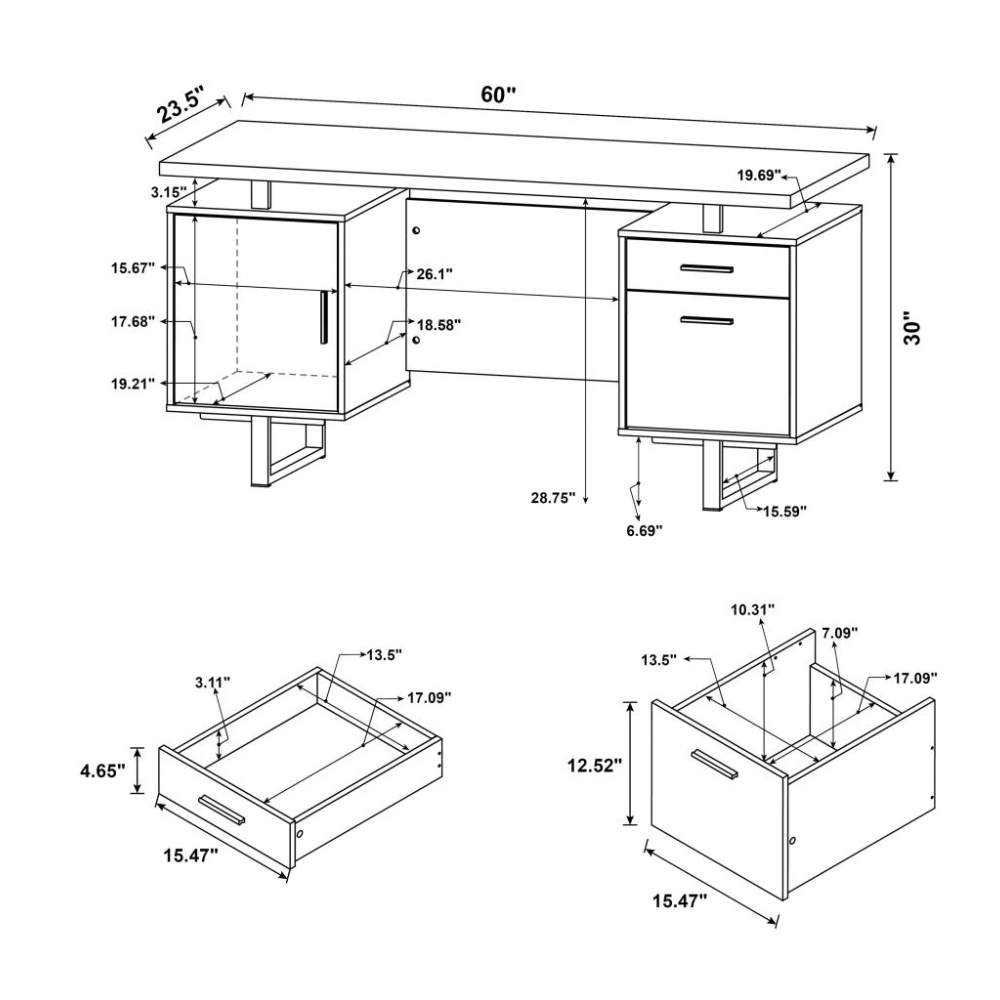 - Smart Storage: Includes one storage cabinet, one drawer, and one file cabinet