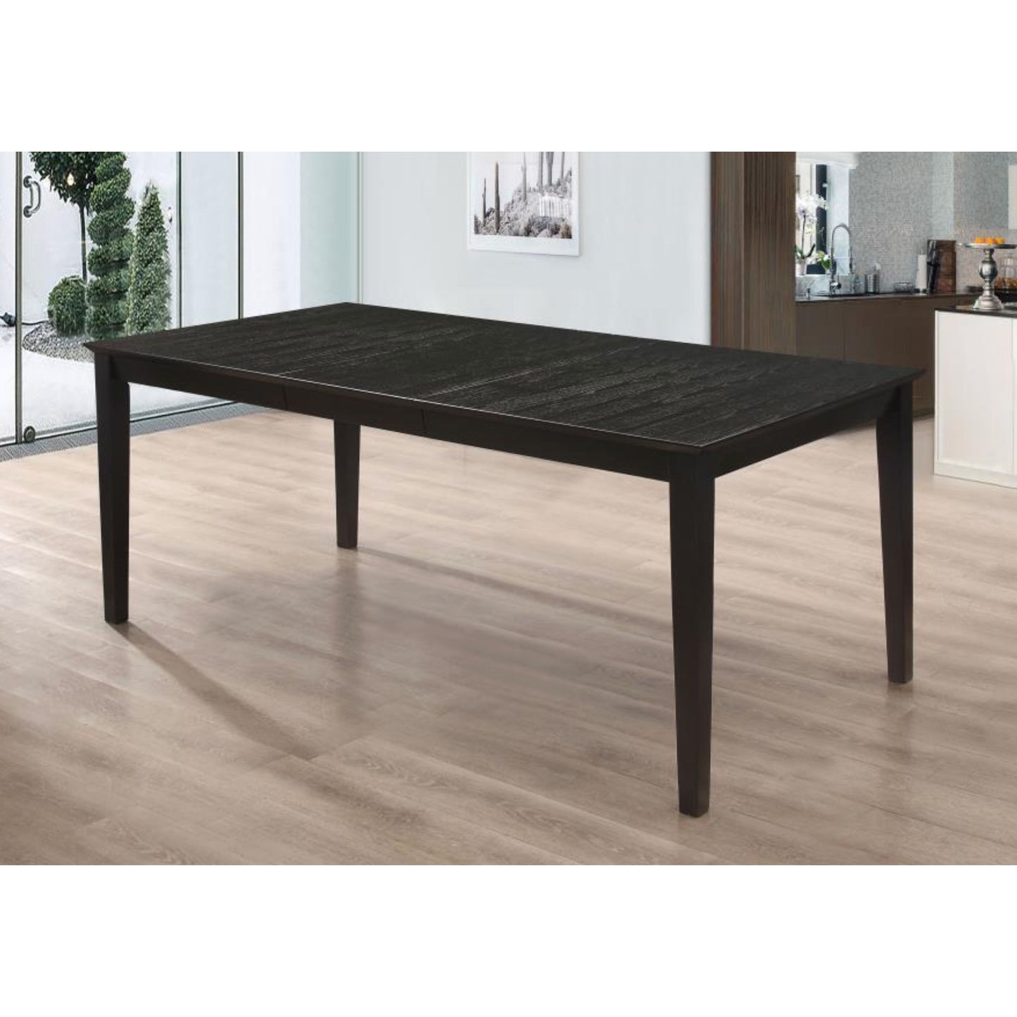 Gather around in style with our chic dining table, designed to create memorable moments over delectable meals. Featuring a sophisticated yet casual glamour, this table elevates any dining space with its sleek silhouette and modern aesthetic. The clean lines and distressed black finish exude elegance, while the sturdy construction from durable hardwoods and veneer ensures lasting quality and resilience.