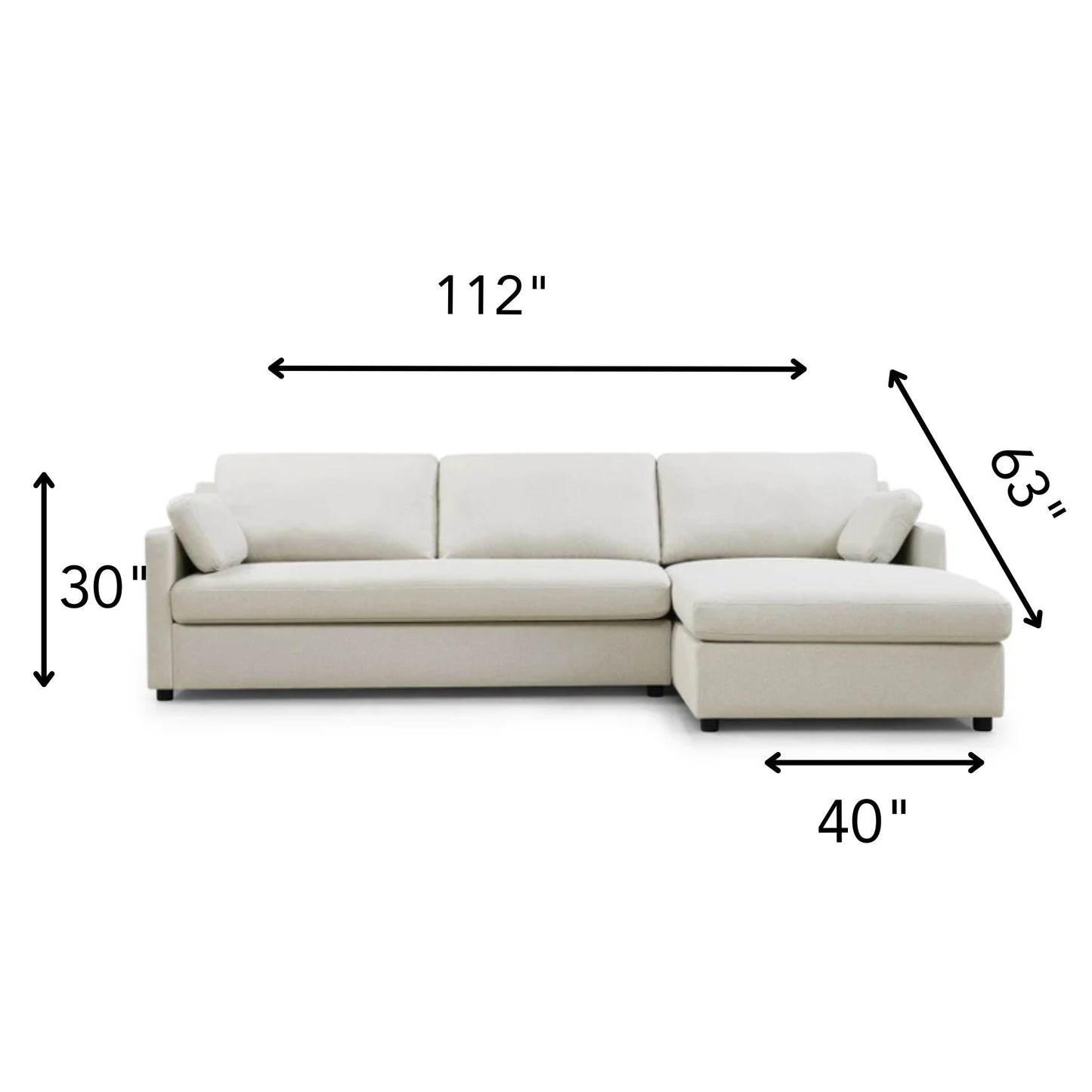 - Sturdy Black Legs: The black legs of the sectional offer a strong contrast to the cream fabric, creating an eye-catching design element. They provide stability and contribute to the overall modern look.