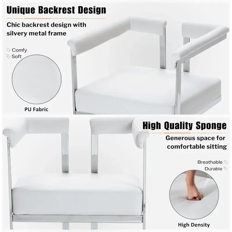 Enhance your space with this modern accent chair, designed with a stylish gap in the backrest for a unique and elevated aesthetic. Wrapped in high-quality fabric with plush high-density sponge padding, it offers both comfort and sophistication. Supported by a sturdy silver metal frame, this chair is perfect for versatile use in dining areas, living spaces, offices, and more.