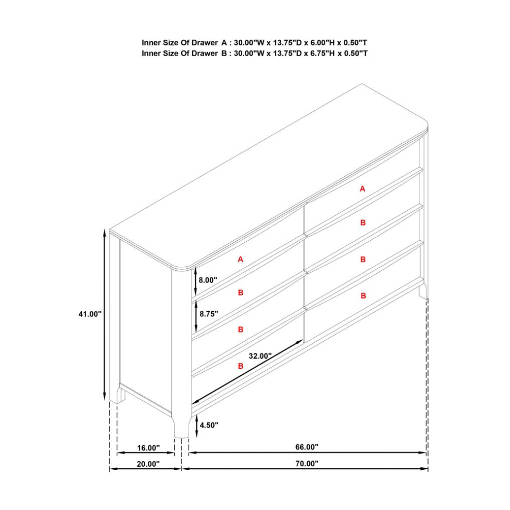 | Dresser | 70.00" | 20.00" | 41.25" | 213.84 lbs |