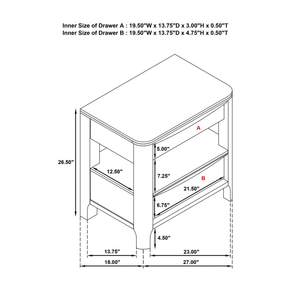 | Nightstand | 27.25" | 18.00" | 26.75" | 57.32 lbs |