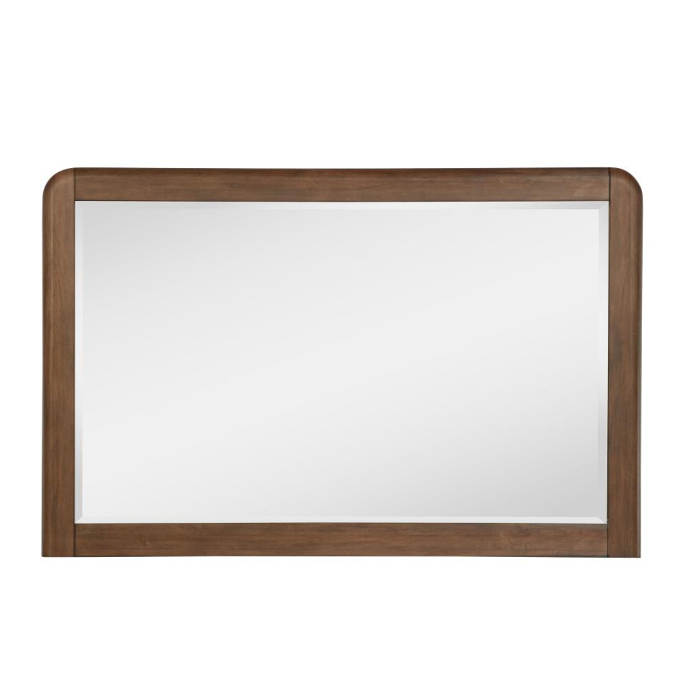 Upgrade your dresser with this transitional framed mirror, designed to add depth and brightness to your space. Featuring a walnut veneer frame with rounded corners and beveled glass, it offers refined texture and warmth. Its horizontal silhouette mounts directly to your dresser for a seamless, polished look.