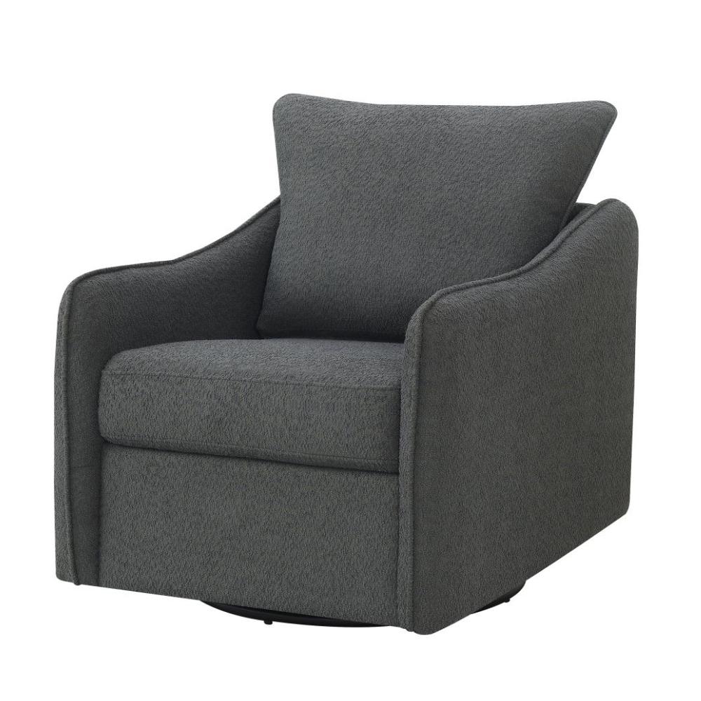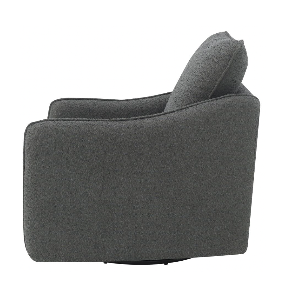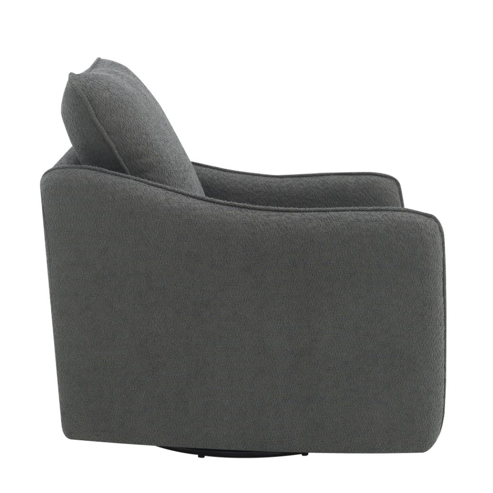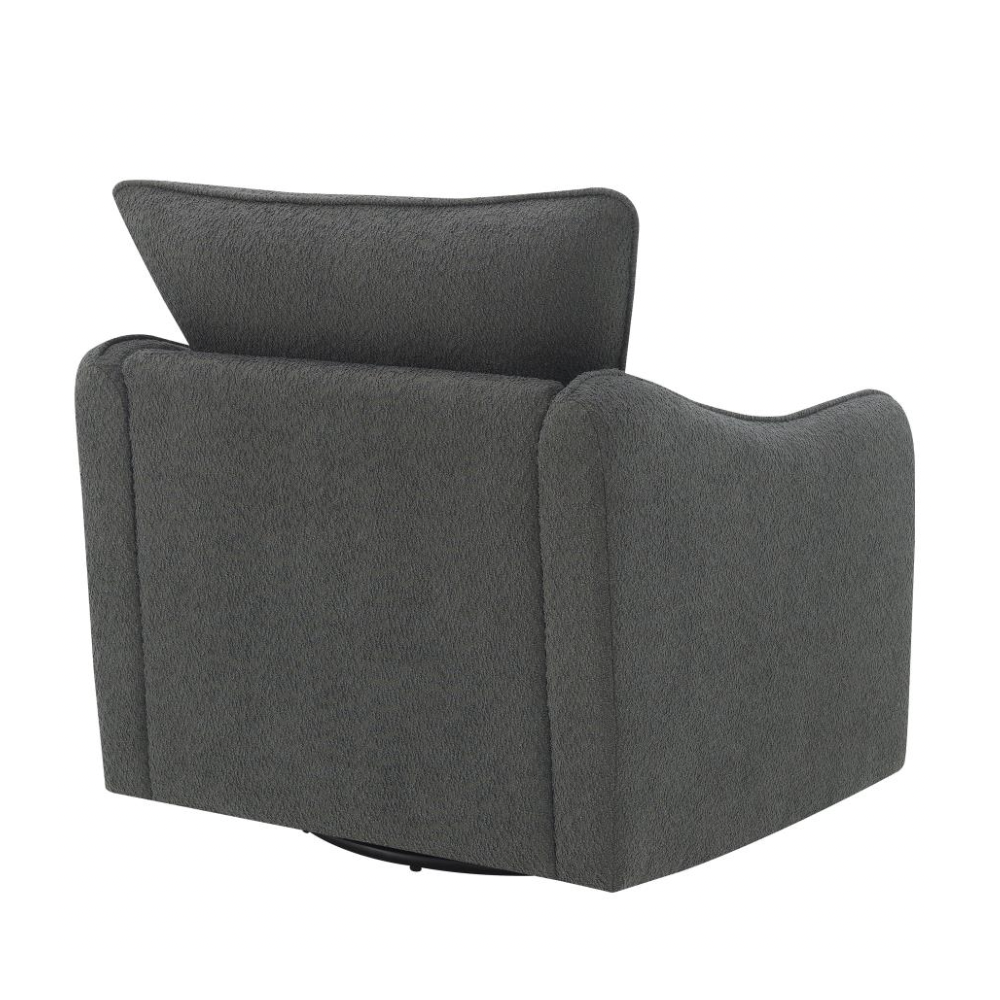 Nestle into the serene embrace of this bouclé upholstered swivel glider chair, where comfort and style converge effortlessly. Upholstered in soft, textured bouclé fabric, this chair invites relaxation while exuding a luxurious aesthetic. A 360-degree swivel and glider mechanism offer seamless movement, making it perfect for unwinding after a long day. With elegantly contoured arms and a solid, durable construction, this chair adds contemporary charm to any modern or traditional setting.