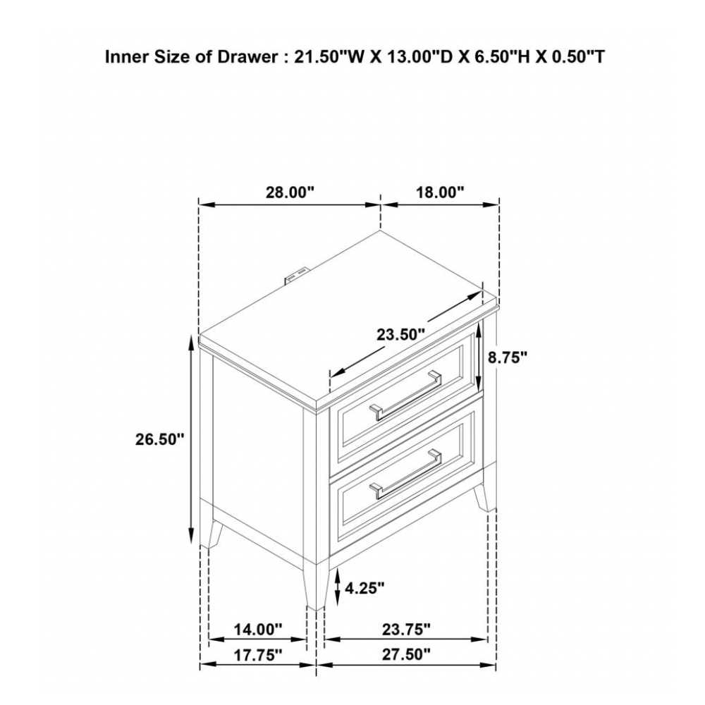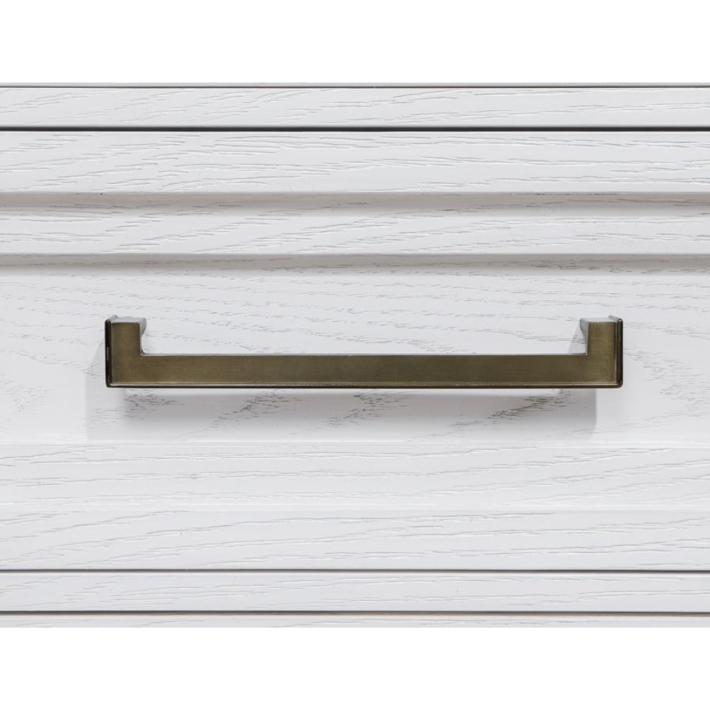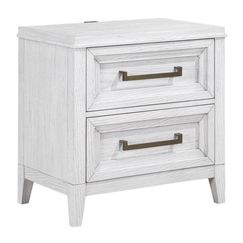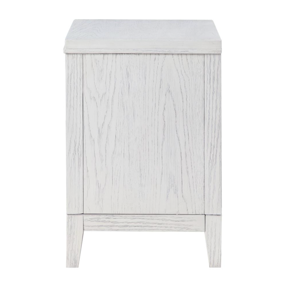 Refresh your bedroom with the understated charm of this modern two-drawer nightstand. A distressed white finish reveals subtle wood grain, while stepped drawer fronts and antique brass bar pulls add refined depth. With spacious drawers and a safety-focused design, it’s both functional and stylish.