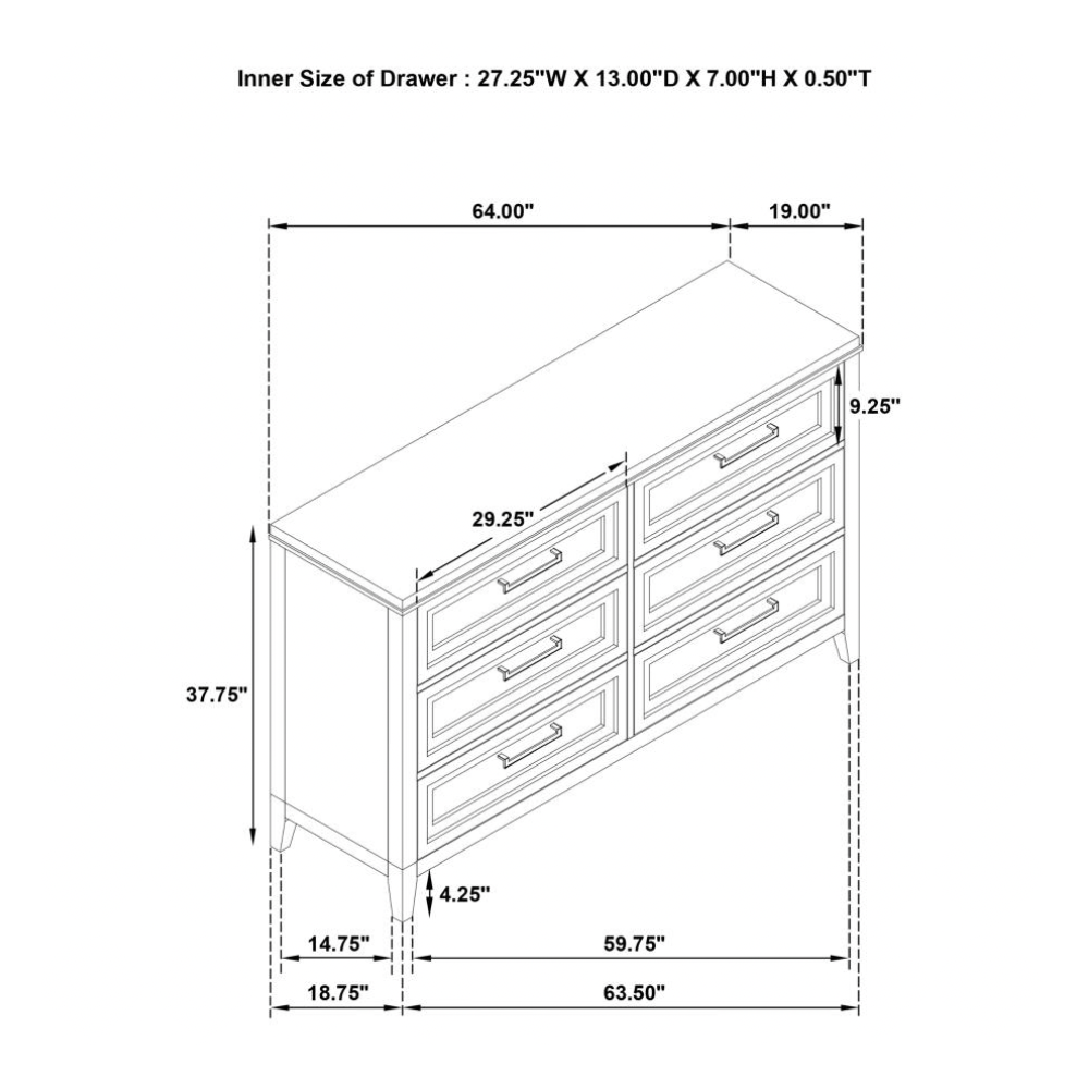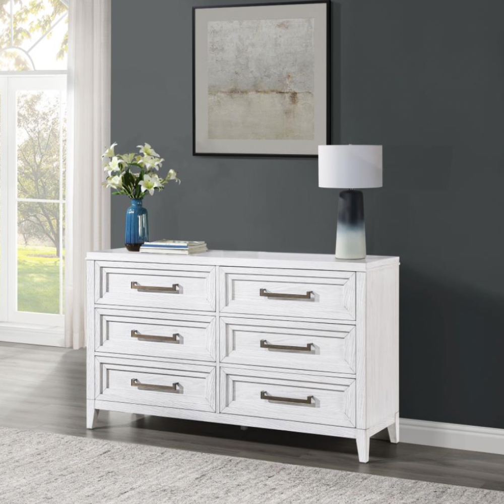 MARIELLE 6-drawer Bedroom Dresser Distressed White