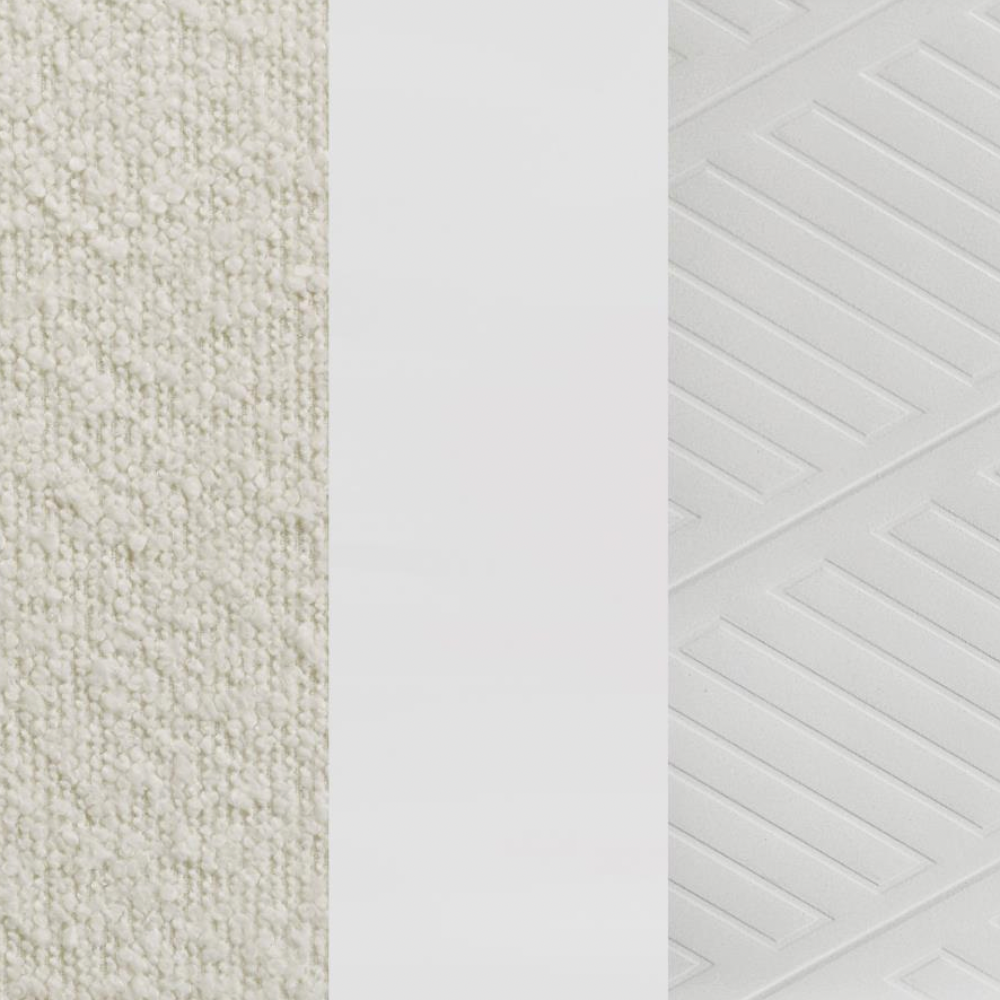 - Elegant Queen Bed: Features a 3-dimensional headboard upholstered in off-white boucle fabric.